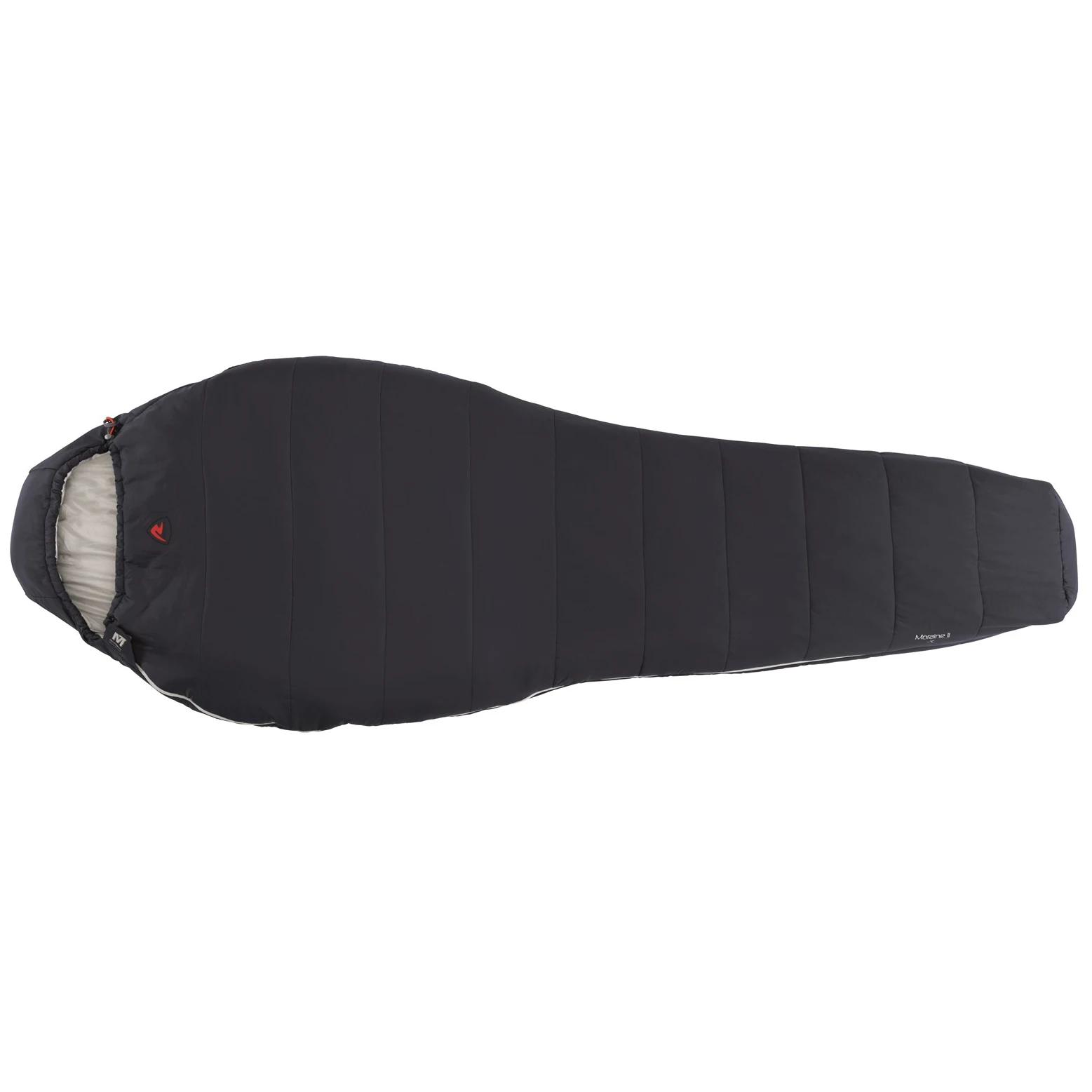 Moraine II Schlafsack der dänischen Firma Robens mit MicroThermo Mikrofaser-Isolierung und Zwei-Wege- YKK-Reißverschlüssen, die einer Nutzung über die gesamte Lebensdauer des Schlafsacks standhalten. MicroThermo-Mikrofasern verleihen dem Schlafsack mehrere Vorteile, darunter eine hervorragende Bauschkraft für bessere Isolierung, geringes Gewicht, perfekte Komprimierbarkeit und lange Haltbarkeit. Mikrofasern sind außerdem antimikrobiell. Die Außenschicht des Schlafsacks besteht aus robustem Nylon mit einer Ripstop -Beschichtung, die wind- und wasserabweisend ist. Das Innenmaterial besteht aus Taft-Polyester, welches sich angenehm anfühlt und schnell trocknet. Selbstverständlich ist entlang des Reißverschlusses eine Abdeckklappe vorhanden.