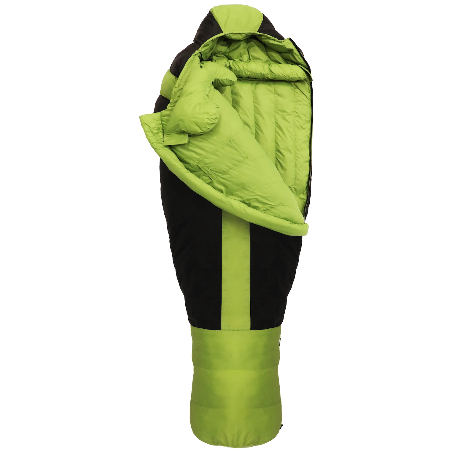 Ein weiteres interessantes Merkmal des Schlafsacks ist seine Omega -Konstruktion, bei der sich die Nähte und Reißverschlüsse an der Unterseite des Schlafsacks befinden. Diese ergonomische Form erhöht die Wärmespeicherung im Kopf- und Schulterbereich. Gleichzeitig verjüngt es sich zu den Füßen hin und erhöht so die Wärmeeffizienz. Der Fußbereich ist zudem mit einer Pfeilform ausgestattet, die Ihren Füßen eine entspannte und natürliche Haltung ermöglicht.