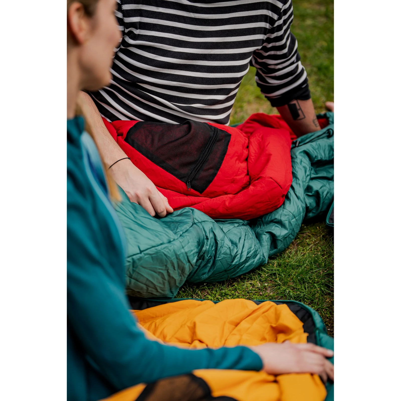 Unangenehmes Hängenbleiben des Reißverschlussschiebers wird durch das verstärkte Futter um den Hauptreißverschluss minimiert. Auch daran wurde gedacht, den Schlafsack bei Dunkelheit möglichst angenehm zu gestalten. Der Kapuzenzug hat unterschiedliche Farben und Formen und der leuchtende Reißverschlusszug leuchtet nachts. Sie werden auch die geräumige Netztasche für Ihr Mobiltelefon, Ihre Powerbank oder Ihre Ohrstöpsel zu schätzen wissen.