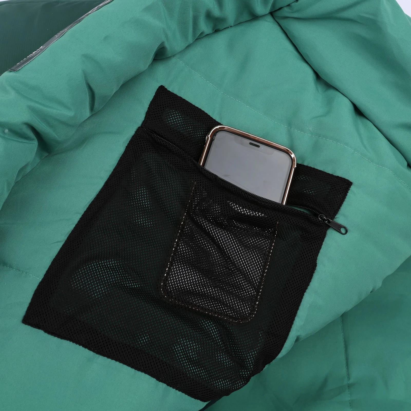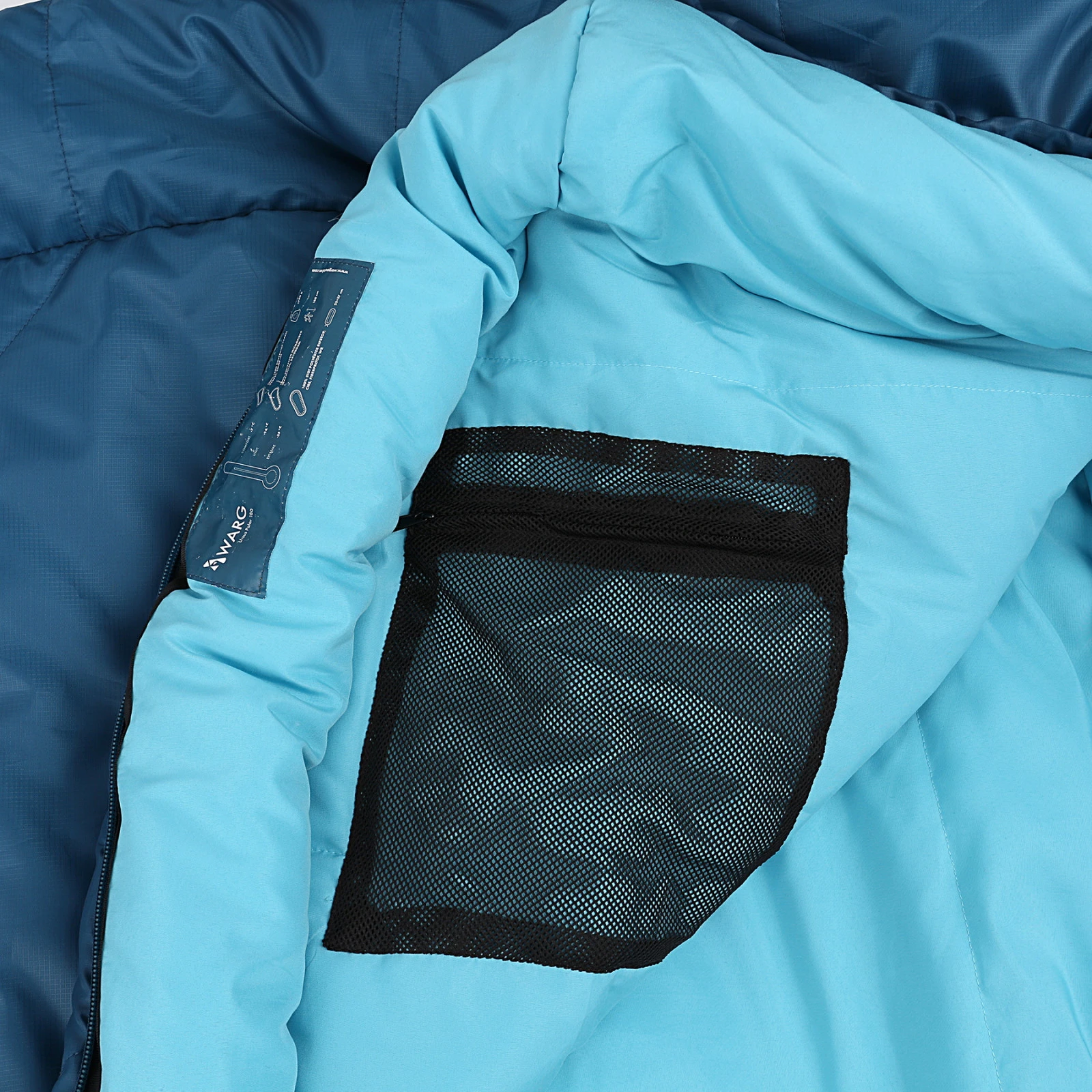 Unangenehmes Hängenbleiben des Reißverschlussschiebers wird durch das verstärkte Futter um den Hauptreißverschluss minimiert. Auch daran wurde gedacht, den Schlafsack bei Dunkelheit möglichst angenehm zu gestalten. Der Kapuzenzug hat unterschiedliche Farben und Formen und der leuchtende Reißverschlusszug leuchtet nachts. Sie werden auch die geräumige Netztasche für Ihr Mobiltelefon, Ihre Powerbank oder Ihre Ohrstöpsel zu schätzen wissen.