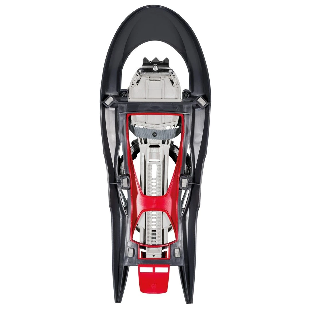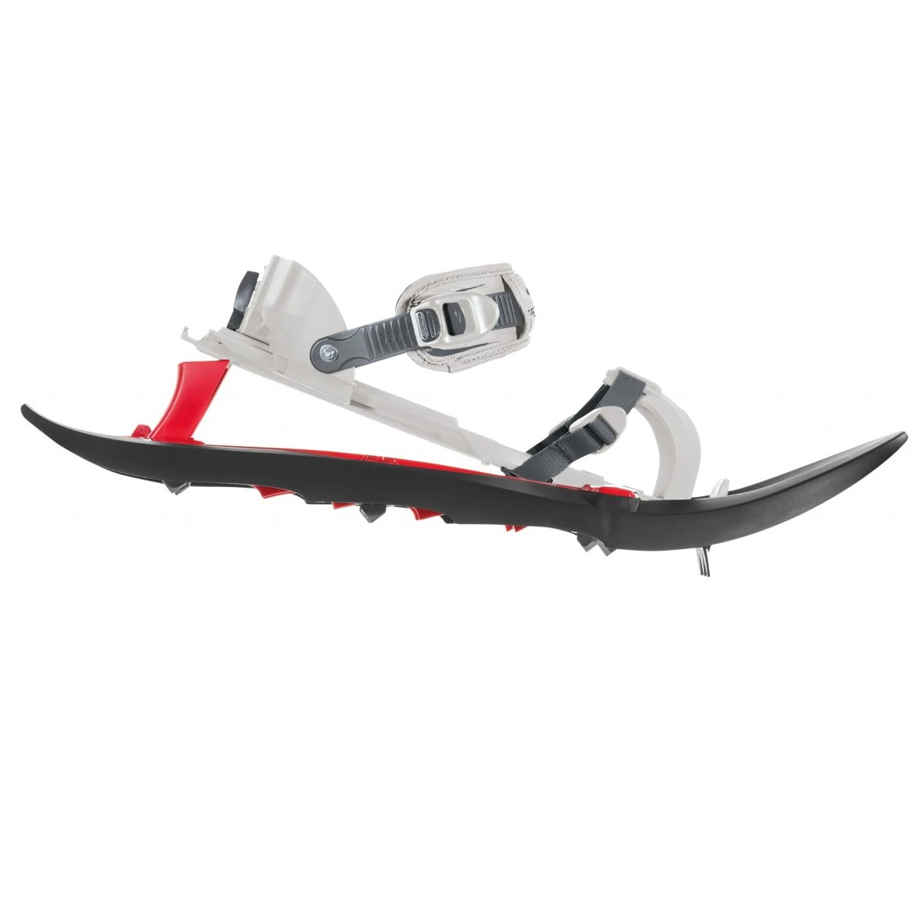 Die Befestigung Castor Special ist sehr simpel aber zuverlässig, selbst ein absoluter Anfänger kommt damit zurecht. Passe dazu einfach die Bindungsgröße Deinem Schuh an, stecke die Schuhspitze in den vorderen „Korb“ und ziehe die Riemen an Zehen und Knöchel fest. Der Knöchelriemen ist mit einem Ratschenspannsystem ausgestattet. Fädeln Sie den Keilriemen einfach durch die Ratsche, heben Sie ihn an und ziehen Sie ihn ein paar Mal fest, um den Stiefel fest an den Schneeschuhen zu befestigen.