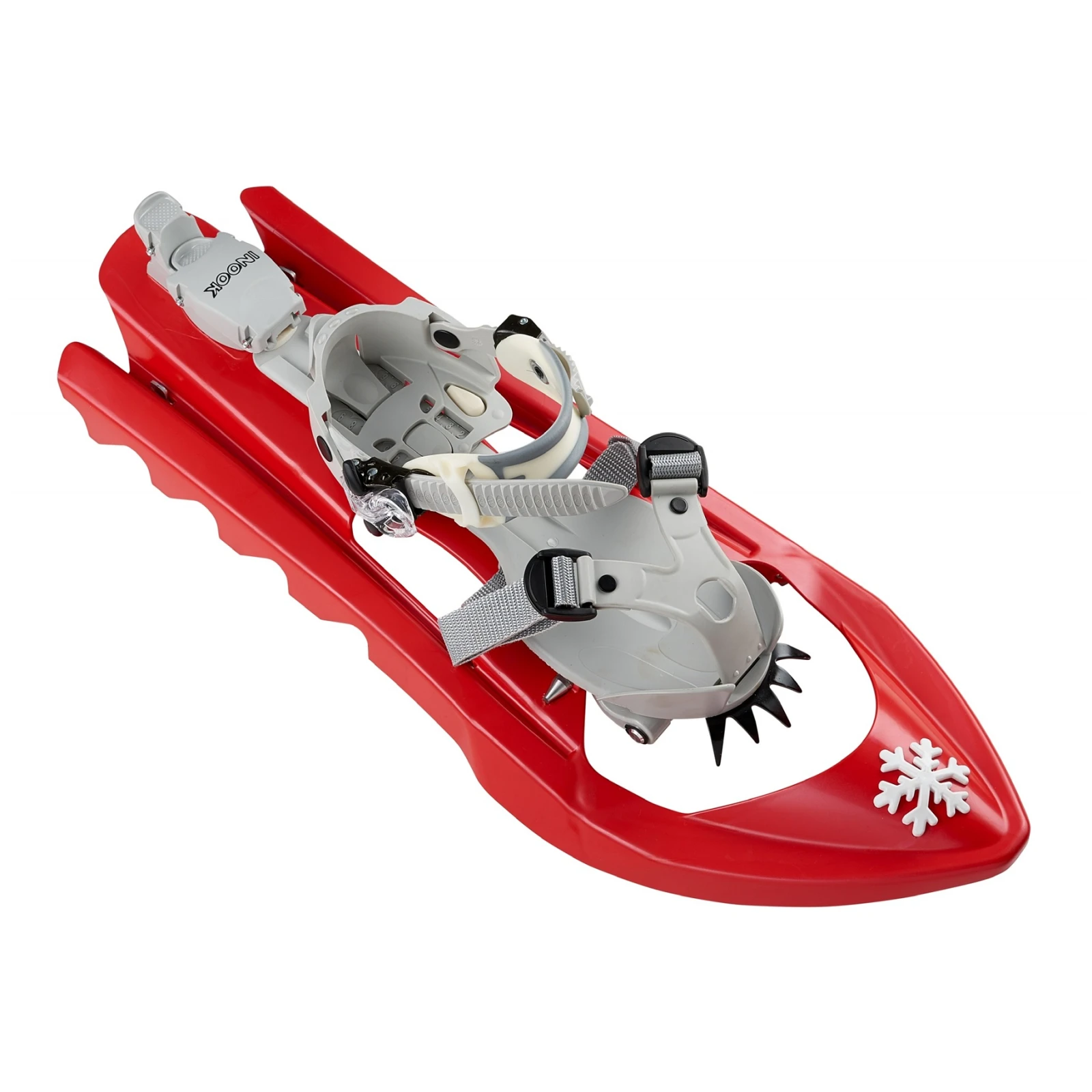 Auch die besonders clevere Lösung zur Befestigung der Schuhewird Sie begeistern: Diese lässt sich ganz einfach über eine Ratsche festziehen, ähnlich wie bei Snowboard-Bindungen. Die Ratsche verfügt zudem über ein spezielles System, das ein einfaches Lösen der Ratsche auch mit Handschuhen ermöglicht. Zudem lassen sich die Schneeschuhe durch den Klemmgurt, welcher über eine zweite Ratsche zentriert werden kann, an jede Schuhgröße anpassen. Schneeschuhe werden mit Verpackung geliefert.