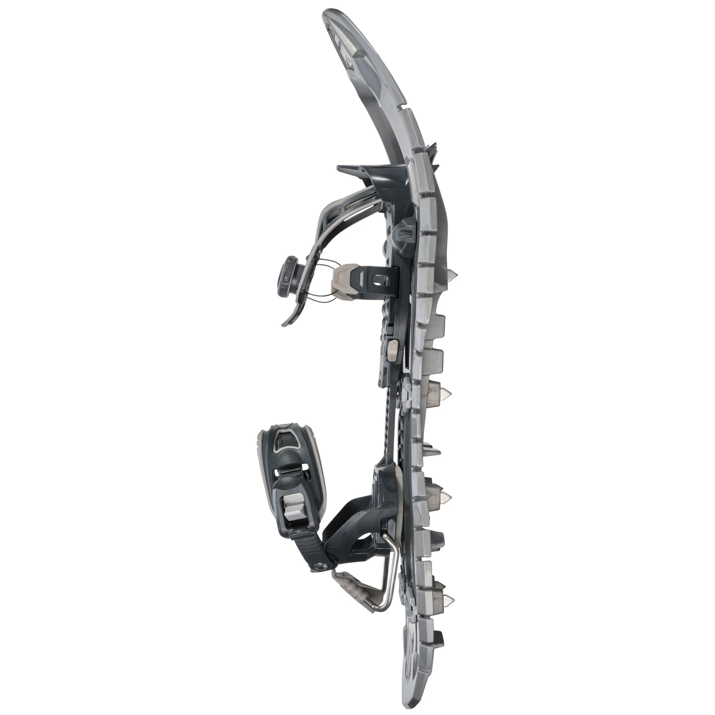 - Vorderbacken – Bei jedem Schritt fährt der Vorderbacken mit drei Edelstahl-Spikes an der Spitze aus und verhindert so, dass du abrutschst und unnötig Energie verlierst.