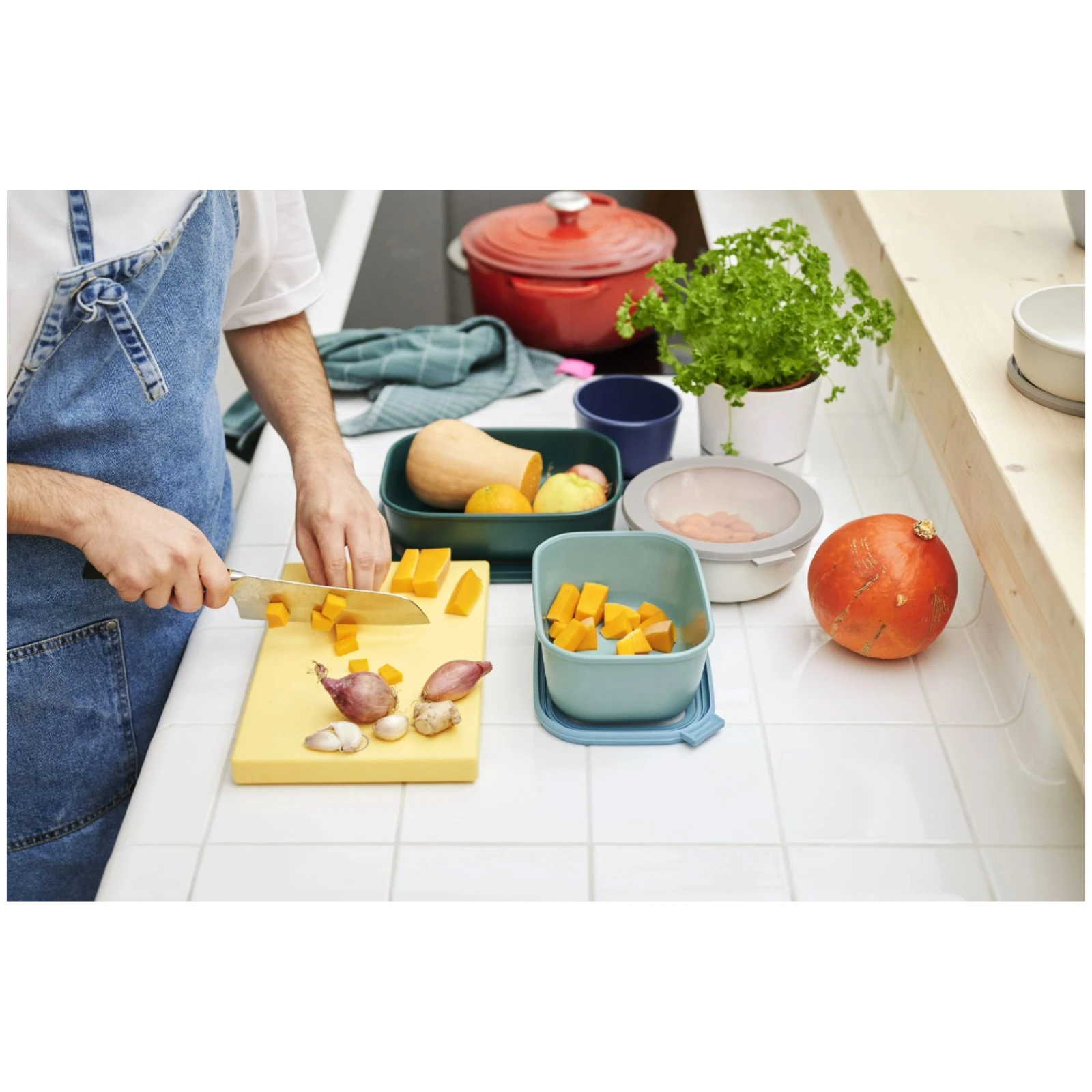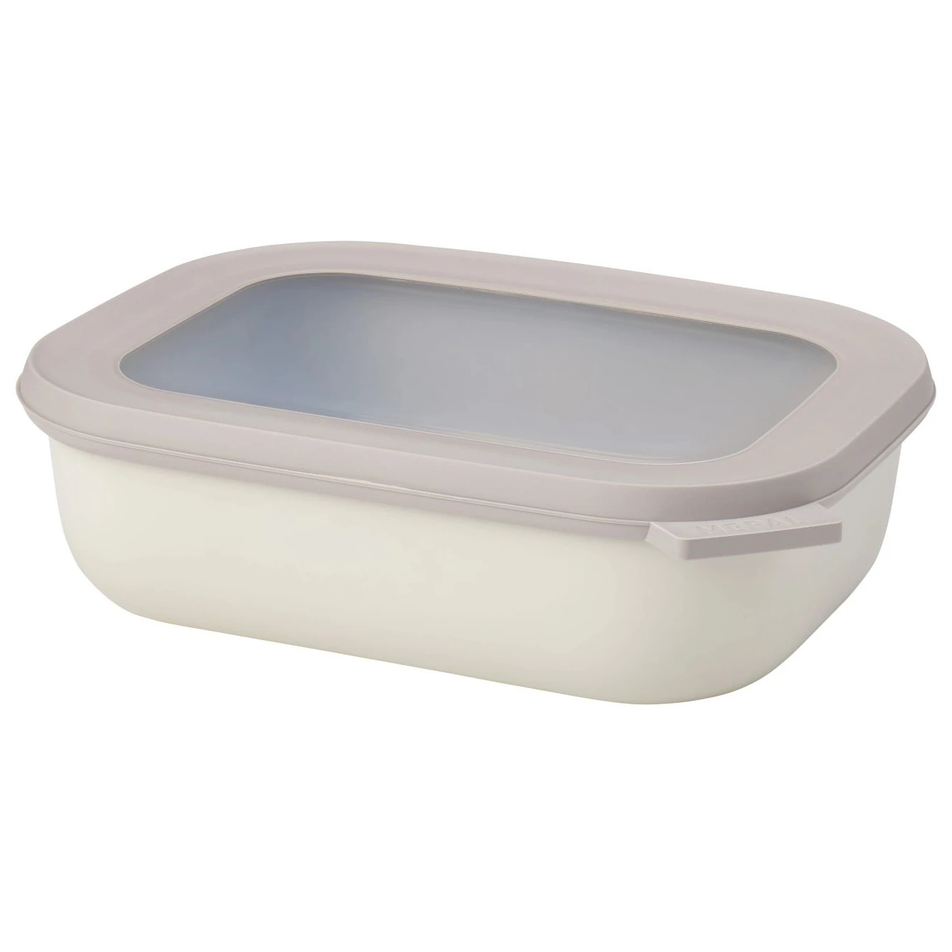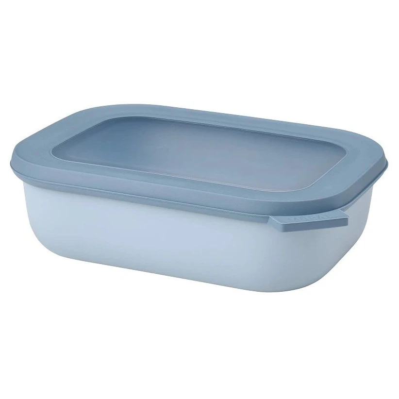 Praktische niedrige Schüssel Mepal Cirqula Rectangular 1000 m aus hochwertigem Kunststoff zur Aufbewahrung von Lebensmitteln im Kühlschrank, Gefrierschrank und Vorratsschrank. Die mittelgroße Schüssel eignet sich auch hervorragend für Salate, Snacks, Obst und Gemüse. Der Deckel verschließt den Behälter optimal, sodass du dein Essen sicher mit zur Schule, zur Arbeit oder unterwegs nehmen kannst. Es hält Lebensmittel frisch und knackig. Dank der wunderschönen nordischen Farben können Sie Speisen in einer Schüssel direkt auf den Tisch servieren.