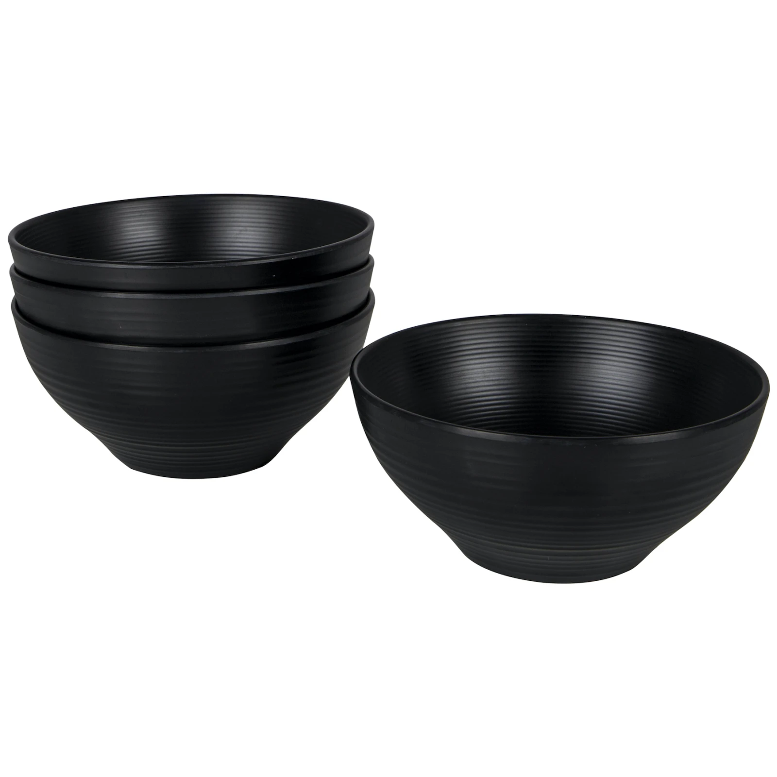 Diese industriellen Schüsseln Orville von Bo-Camp haben eine robuste Ausstrahlung. Schwarzes Geschirr hat eine robuste Ausstrahlung mit erhöhtem Rand. Neben dem schönen Design ist das Geschirr sehr leicht und stabil. Die Schüsseln sind gut für den Einsatz beim Camping geeignet, da sie nahezu unzerbrechlich, bruchsicher und kratzfest sind. Auch zu Hause können die Schalen problemlos verwendet werden. Das 4-teilige Set besteht aus hochwertigem 100% Melamin, ist spülmaschinenfest und lebensmittelecht. Hauptmerkmale der Orville-Schüssel Bo-Camp: