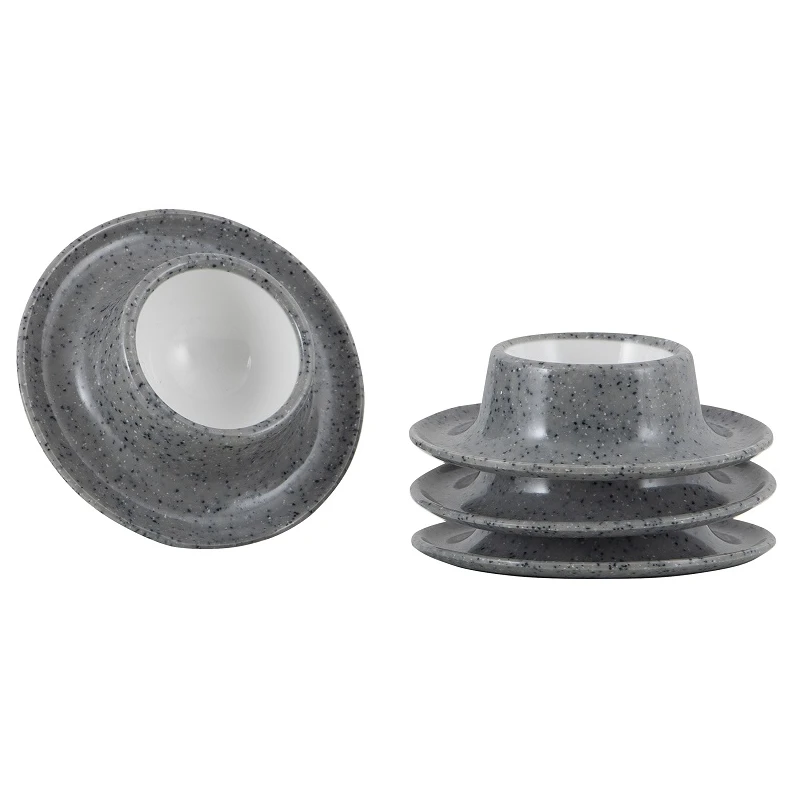 Das stylische Eierbecher-Set Gimex Eierhalter Granite grey beinhaltet 4 Teile praktisch unzerbrechliches Geschirr aus langlebigem Melamin-Material.