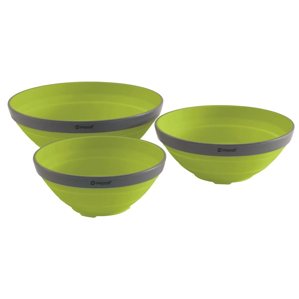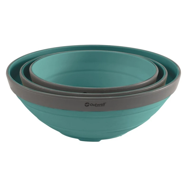 Wenn Sie auf der Suche nach Geschirr sind, das sich bei Nichtgebrauch gut verstauen lässt und zudem bruchfest ist, dann ist die dänische Marke Outwell mit dem Collaps Schüssel-Set genau das Richtige für Sie. Das Set beinhaltet eine kleine Schüssel mit den Maßen 8,5 x 20,5 cm, eine mittlere Schüssel mit den Maßen 9 x 23,5 cm und eine große Schüssel mit den Maßen 10 x 28 cm. Alle Schalen lassen sich ganz einfach auf die Größe 6x28 cm zusammenfalten. Die Schüsseln bestehen aus TPE-Silikon und Kunststoff und enthalten kein BPA – also keine Schadstoffe.