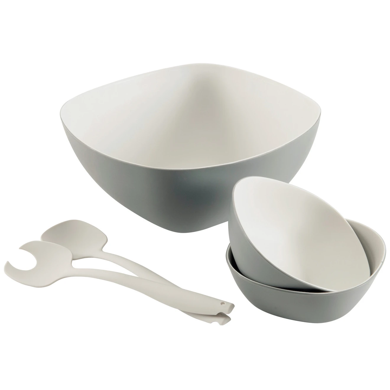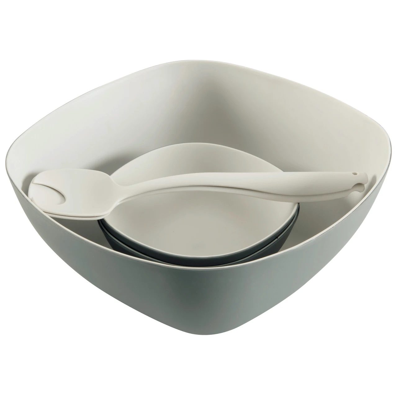 Salatset Das Gala-Salatset der Marke Outwell ist eine ideale Wahl für Camping, Garten oder Ferienhaus. Das Set besteht aus Polypropylen und ist mikrowellen- und spülmaschinenfest. Das Set umfasst eine große Schüssel, zwei kleinere Schüsseln und Salatbesteck zum Mischen Ihres Lieblingssalats. Es verträgt Kälte und Hitze gleichermaßen, ist unempfindlich gegen Beschädigungen und leicht zu reinigen.