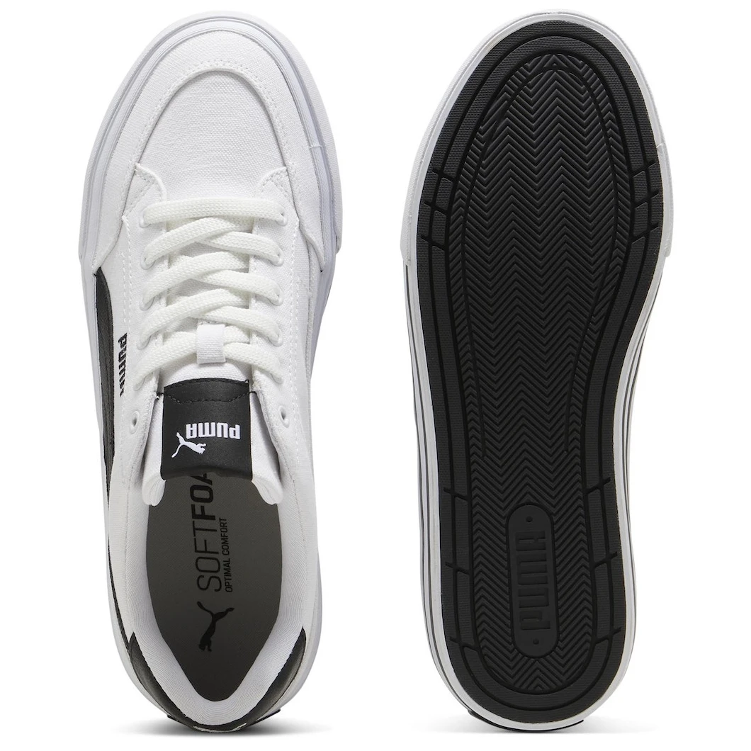 Das Canvas-Obermaterial ist äußerst atmungsaktiv. Für Tragekomfort sorgt die weiche und sehr leichte Softfoam+-Innensohle, die sich dem Fuß anpasst und gleichzeitig für eine hervorragende Dämpfung sorgt. Die Seiten der Schuhe sind mit der Formstrip-Technologie Puma verstärkt. Die Sohle besteht komplett aus hochwertigem, langlebigem Gummi, das für Stabilität auf unebenen Böden und perfekten Grip sorgt. Zudem ist eine klassische Schnürung vorhanden, wodurch sich der Schuh optimal an die Fußform anpasst, ohne dass die Gefahr besteht, beim Gehen zu rutschen.