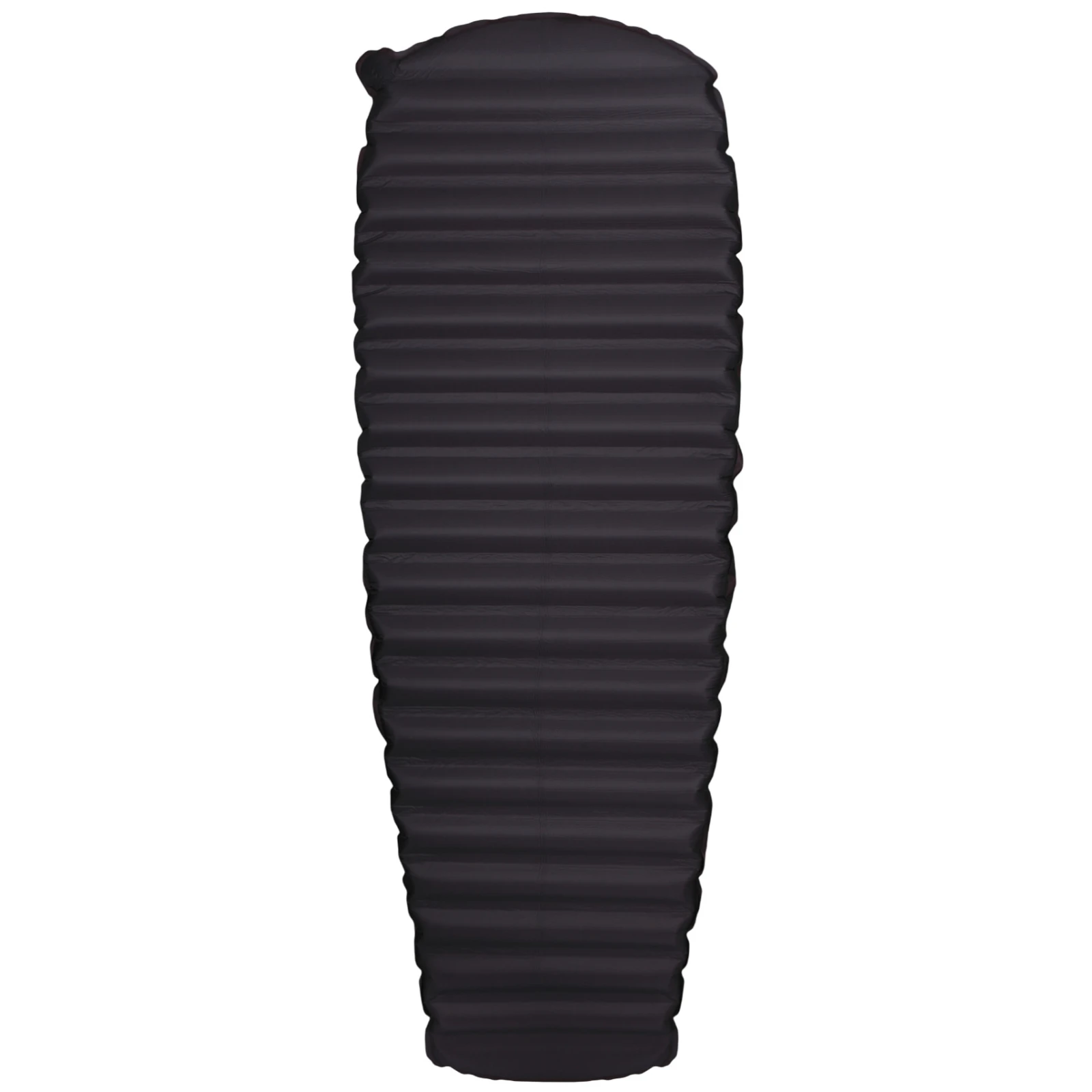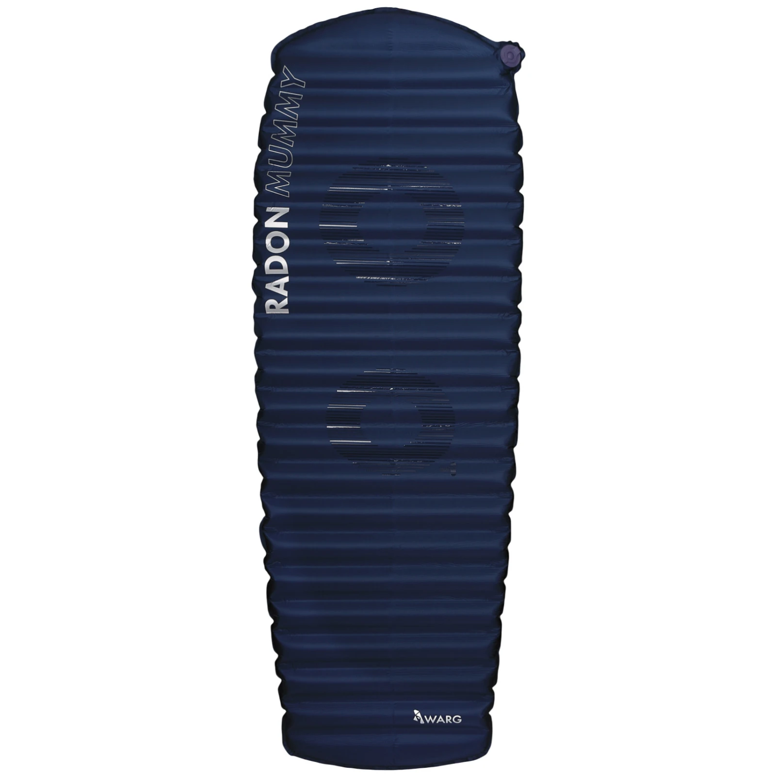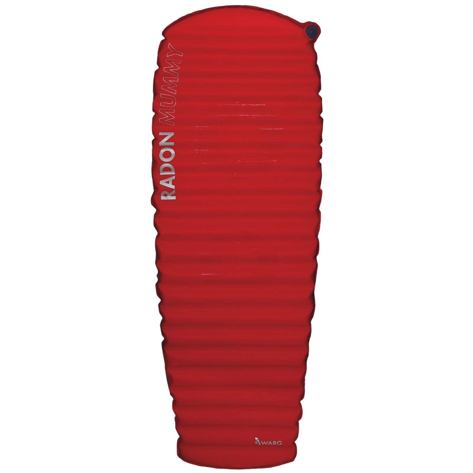Bei der Radon Mummy Isomatte Warg ist der 5 cm PU-Schaum mittig eingeschnitten, so dass Ober- und Unterseite komplett intakt sind, was zur Folge hat, dass die Wärme über die gesamte Länge der Isomatte erhalten bleibt. Das Aufblasventil verhindert das Austreten von Luft beim Aufblasen, hat ein sehr schmales Profil und stört nicht beim Schlafen.