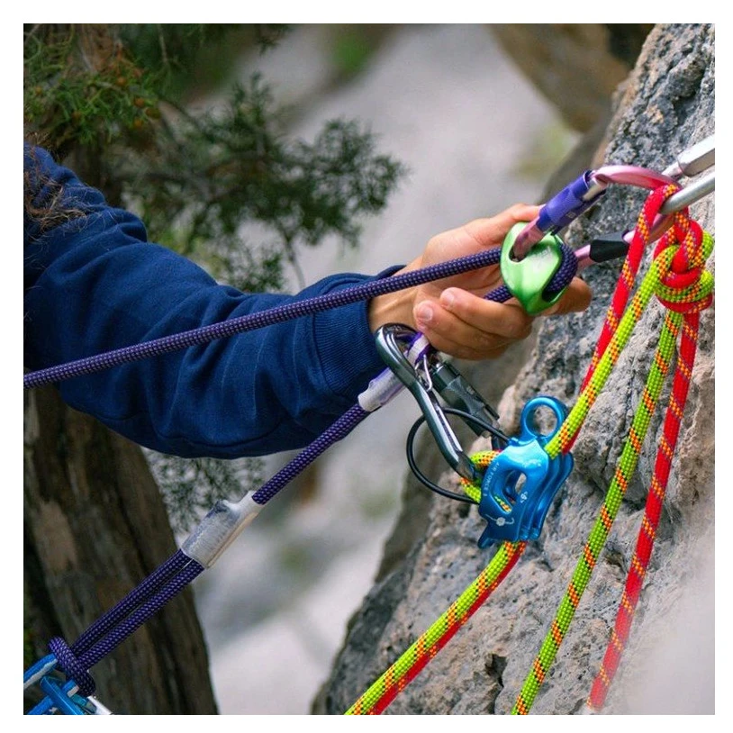 - genähte Dyneema-Schlaufe zum Anschliessen des Abseilgeräts (Karabiner + Abseilgerät)