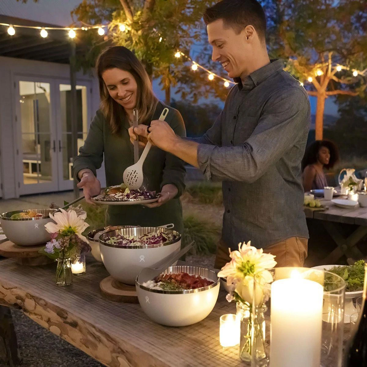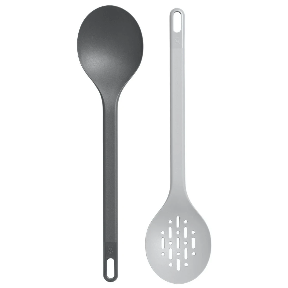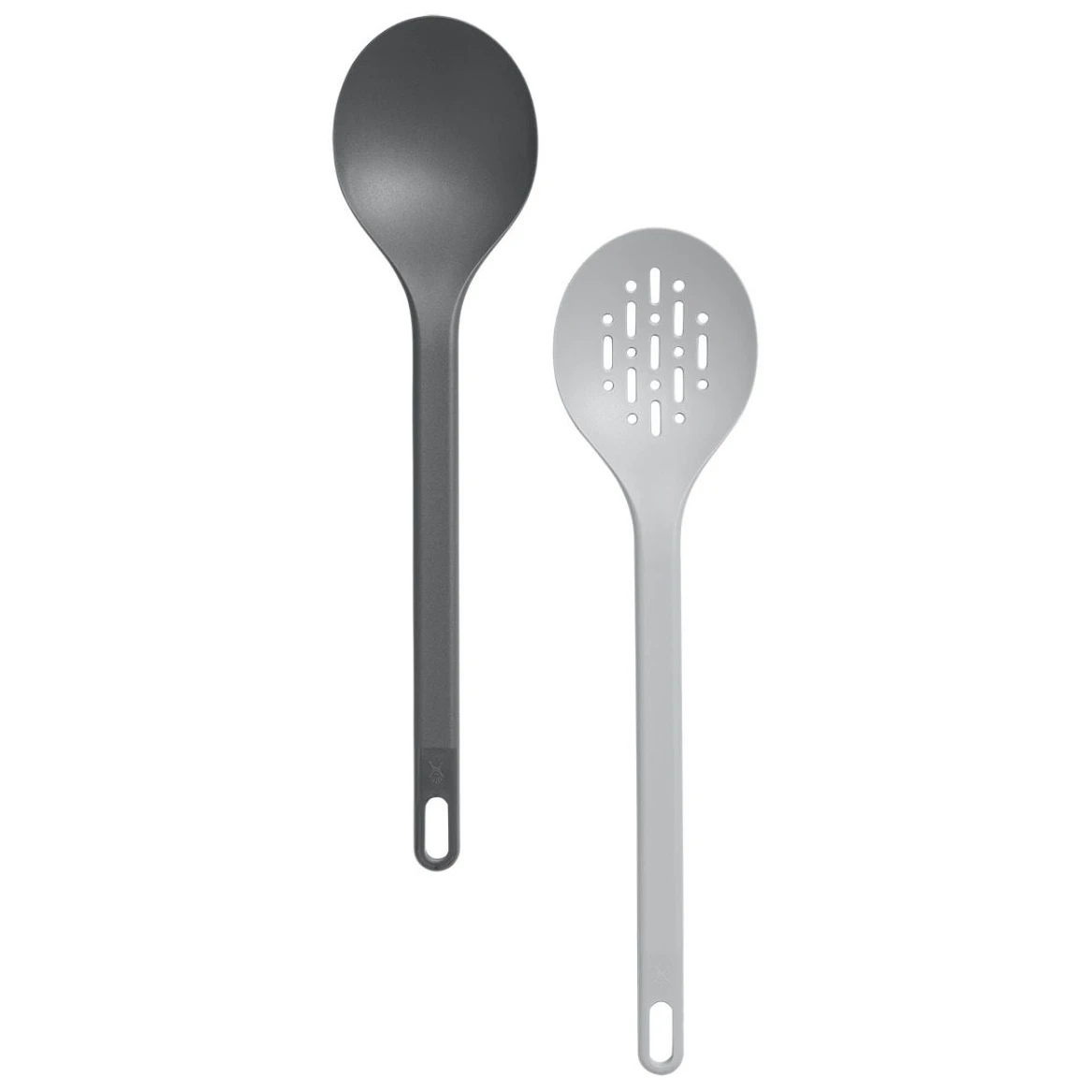 Ein zweiteiliges Set Servierlöffel, das Sie bei Picknicks im Freien mit Freunden oder zu Hause, wenn eine größere Gruppe zusammenkommt, lieben werden.