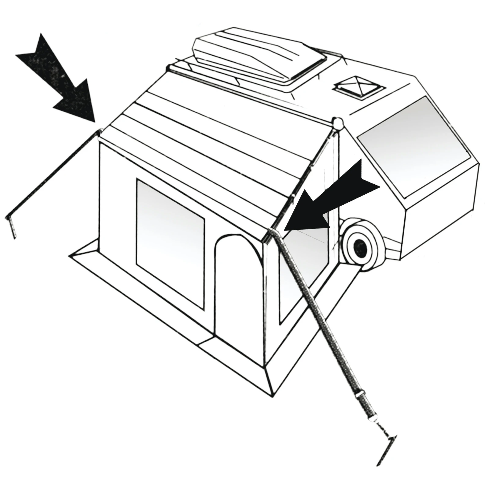 Das Tie-Down Kit Universal von Bo-Camp ist ein universelles Set aus Sturmgurten passend für Vorzelte mit Clips.