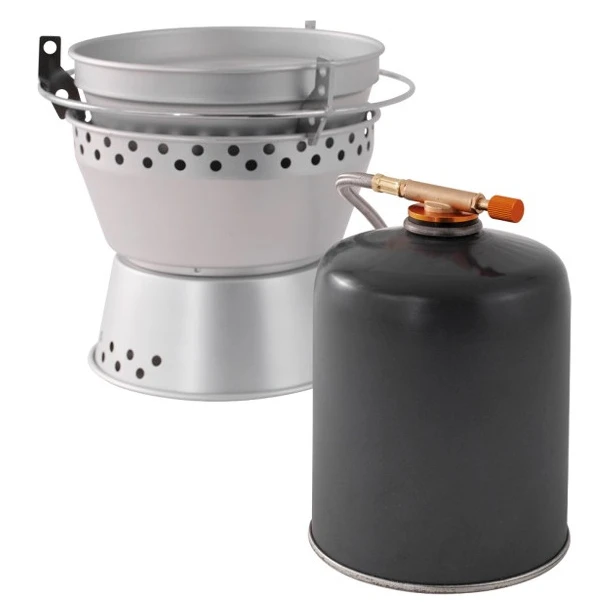 Das Kocher- und Herdset Storm der Marke Easy Camp ist ein praktisches Set für Liebhaber von Outdoor-Abenteuern. Das Set besteht aus einem Gasbrenner, Haltern die als Sieb dienen, einem Teller/Deckel, 2 Töpfen (1,3l und 1,5l) und einem abnehmbaren Griff, der Verbrennungen beim Bewegen des Topfes verhindert. Der 1600W Gasbrenner ist mit einem geflochtenen Schlauch ausgestattet. Für eine effiziente Gasverbrennung und Windschutz sorgt dann ein im Topfhalter integriertes Sieb. Das gesamte Set kann separat zusammengestellt werden.