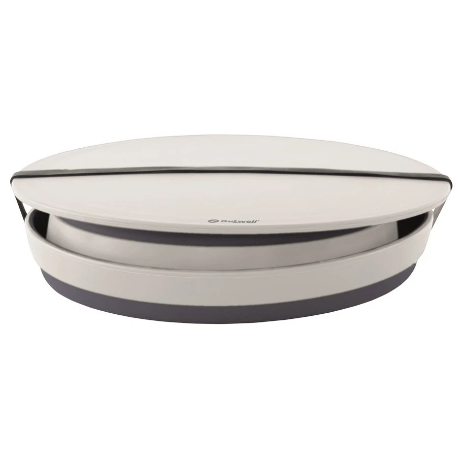Wenn Sie auf der Suche nach Geschirr sind, das sehr kompakt und zugleich bruchsicherist, dann hat die dänische Marke Outwell das Collaps Schüssel- und Sieb-Set im Angebot. Zum Set gehören eine kleine Schüssel mit den Maßen 8,5 x 20,5 cm, ein Sieb mit den Maßen 9 x 23,5 cm und ein Deckel mit den Maßen 0,5 x 29, der auch als Schneidebrett verwendet werden kann. Anschließend lässt sich das gesamte Set auf die kompakte Größe 6,5 x 29 zusammenfalten und nimmt somit kaum Platz ein. Die Schüsseln bestehen aus TPE und Kunststoff und enthalten kein BPA – also keine Schadstoffe. Das Geschirr ist spülmaschinenfest und nicht für die Mikrowelle geeignet.