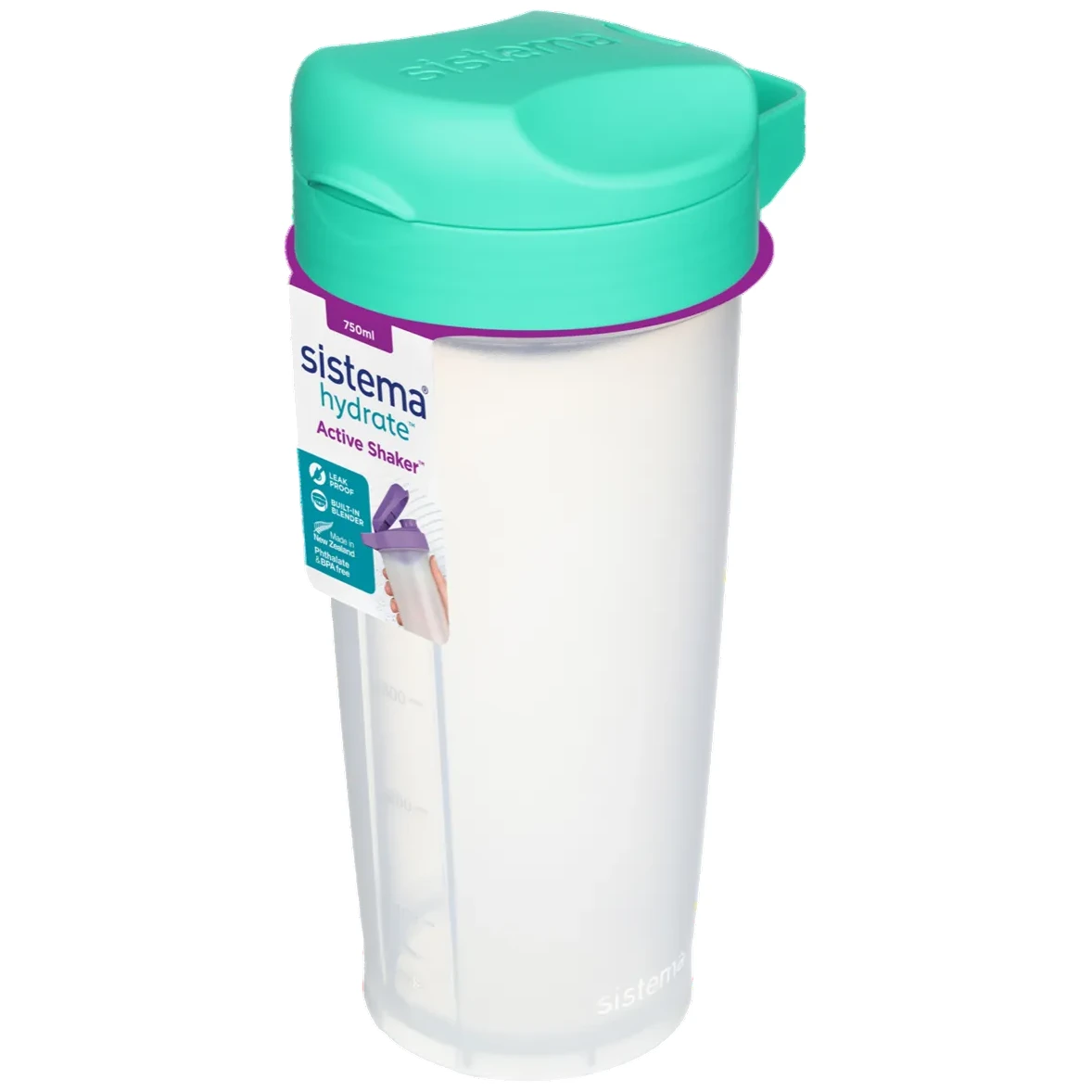 Der Sistema® Active Shaker™ ist ideal für den Transport von Cocktails für unterwegs. Einfach den Shaker mit Pulver und Milch oder Wasser füllen, Turbine draufsetzen, Deckel zudrehen und schütteln. Der Flip-Top-Flaschendeckel hält die Spitze der Flasche sauber und die geformte Fingerschlaufe ermöglicht eine einfache Handhabung unterwegs.