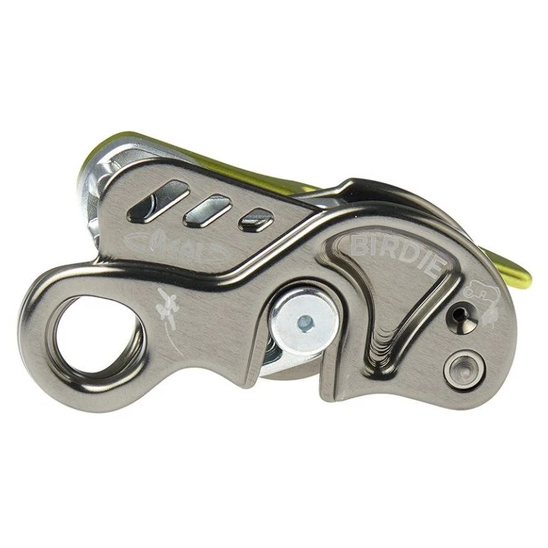 Birdie ist ein kompaktes, einfaches Sicherungsgerät der Marke Beal mit Bremskraftverstärkung zum Sichern des Vorsteigers oder beim Toprope-Klettern. Die gesamte Konstruktion des BEAL Birdie Sicherungsgeräts ist aus Metall. Interne Verbindungsteile + dynamische Nocke und Reibungshammer sind zur Erhöhung der Haltbarkeit aus rostfreiem Stahl gefertigt. Das Seil verläuft durch die Achse des Sicherungsgerätes – dadurch verdreht sich das Seil nicht beim Reiben an der Kante, wie dies bei anderen Herstellern der Fall ist.