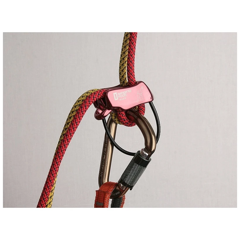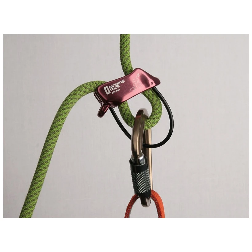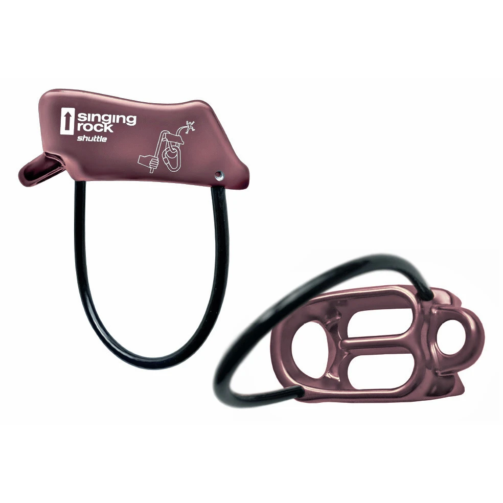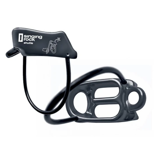 Der Shuttle des Herstellers Singing Rock ist ein Sicherungsgerät, das für optimale Leistung mit Doppel-, Halb- und Einfachseilen konzipiert ist. Die Struktur besteht aus V-förmigen Einkerbungen, die aufgrund der größeren Reibung die Handhabung des Seils deutlich erleichtern. Zusätzlich ist eine Öffnung für einen weiteren Karabinervorhanden, der dann als Hebel zum stufenweisen Lösen der Spannung bei der automatischen Blockierung des Nachsteigers genutzt werden kann. Ein diagonal verlaufendes Seil verhindert, dass das Seil reißt und ausfranst.
