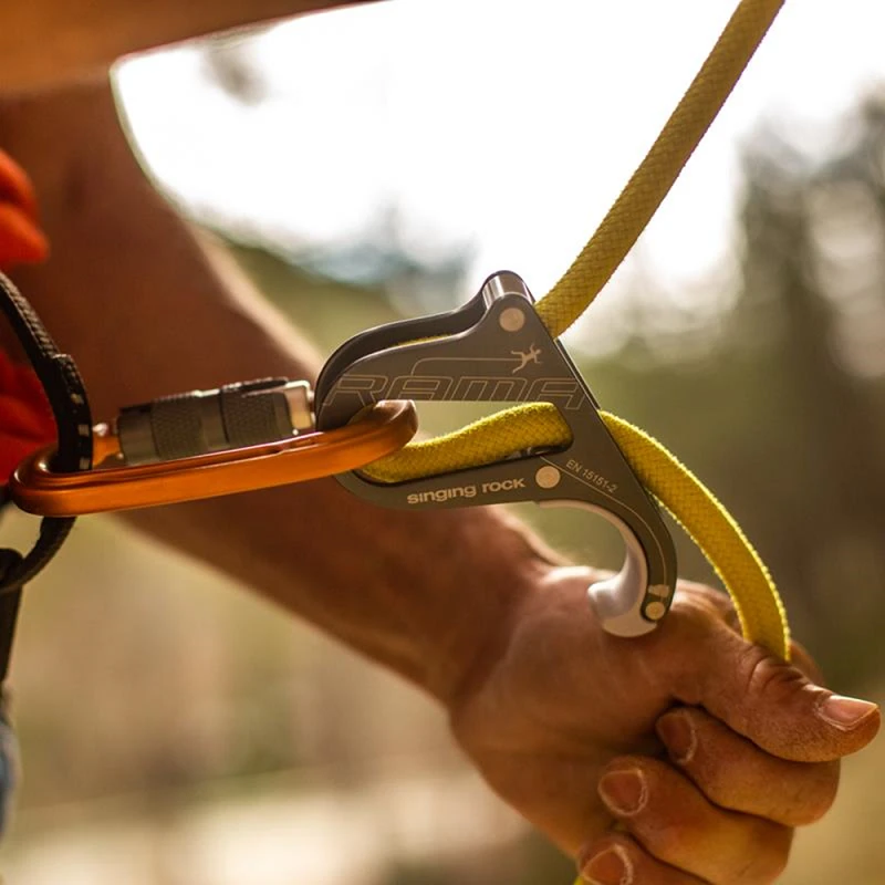 Halbautomatisches jSicherungsgerät Modell Rama der tschechischen Marke Singing Rock zum Sichern beim Sportklettern und Klettern von Einseillängenrouten. Dieses Hilfsmittel mit erhöhter Bremswirkung ist für Einfachseile mit einem Durchmesser von 8,7 bis 11 mm geeignet und funktioniert zuverlässig mit gängigen Karabinertypen. Das Sicherungsgerät ist sehr einfach zu bedienen – nach dem Prinzip eines Abseilgeräts – und für Anfängergeeignet. Sie werden nicht nur die reibungslose Funktionsweise, sondern auch den reibungslosen und sicheren Start zu schätzen wissen. Die Nase des Sicherungsgerätes ist mit gehärtetem Kunststoff ausgestattet, welcher die Reibung bei einem Sturz erhöht.