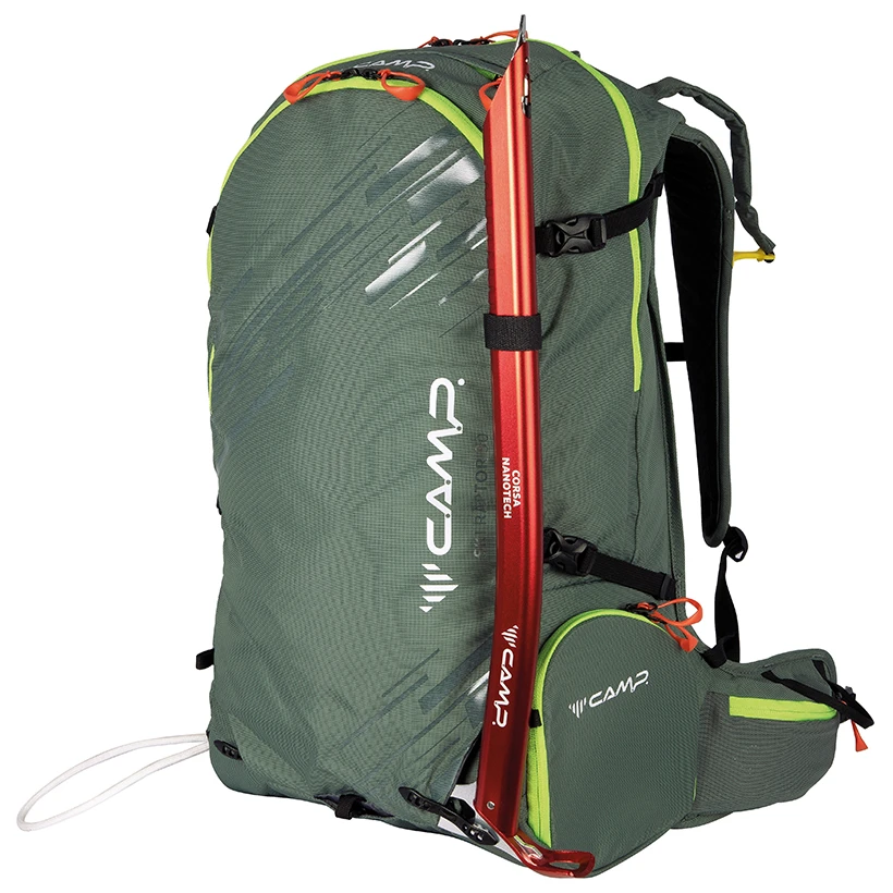 Der robuste Skirucksack Ski Raptor 30l der Marke CAMP ist für Skibergsteigen aller Niveaus geeignet. Deine Ausrüstung befestigst Du mit dem X-Press Schnellverschlusssystem am Rucksack. Der große Vorteil dieses Rucksacks ist der hintere Einstieg in den Rucksack und der obere Zugang. Ausrüstungsgegenstände wie Eispickel, Steigeisen und andere haben ihren eigenen, festgelegten Platz. Stöcke und Helm lassen sich mittels Kordelzug am Rucksack befestigen.