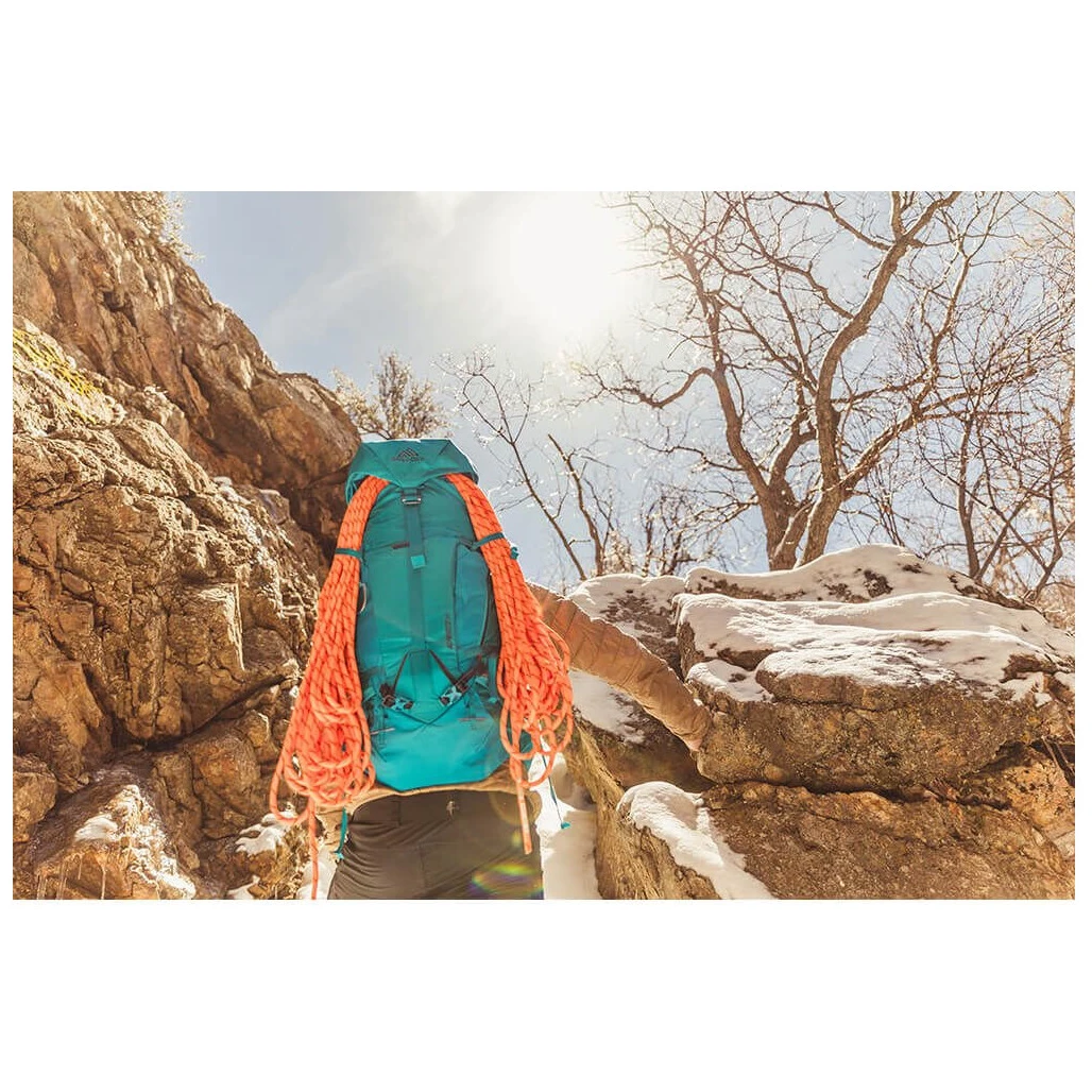 Gregory Der Alpinisto 35 ist für Alpinisten und Skibergsteiger konzipiert, die einen zuverlässigen und vielseitigen Rucksack benötigen. Sein Fusion Flex-Rückensystem sorgt für optimale Gewichtsverteilung und Tragekomfort. Abnehmbare Elementewie der Aluminiumrahmen, die Verstärkungen und der Hüftgurt ermöglichen es Ihnen, das Gewicht des Rucksacks auf bis zu 964 g zu reduzieren, was Sie bei anspruchsvollen Klettertouren zu schätzen wissen werden.