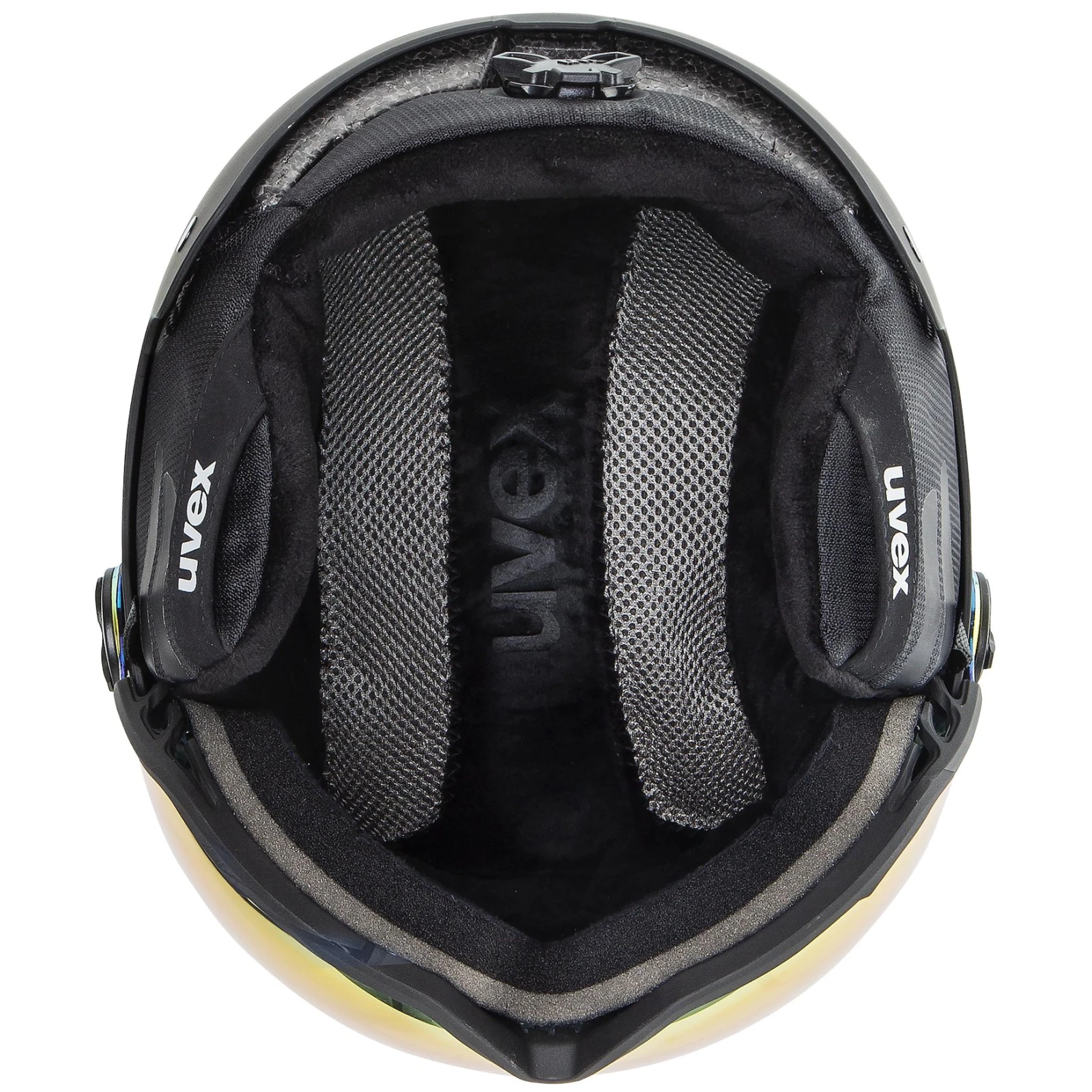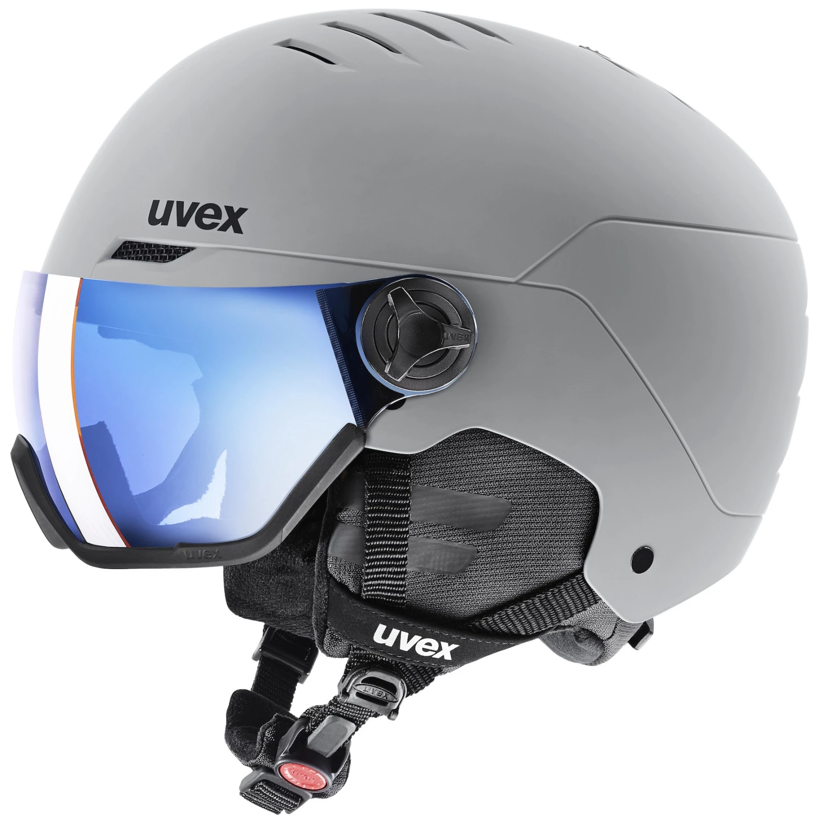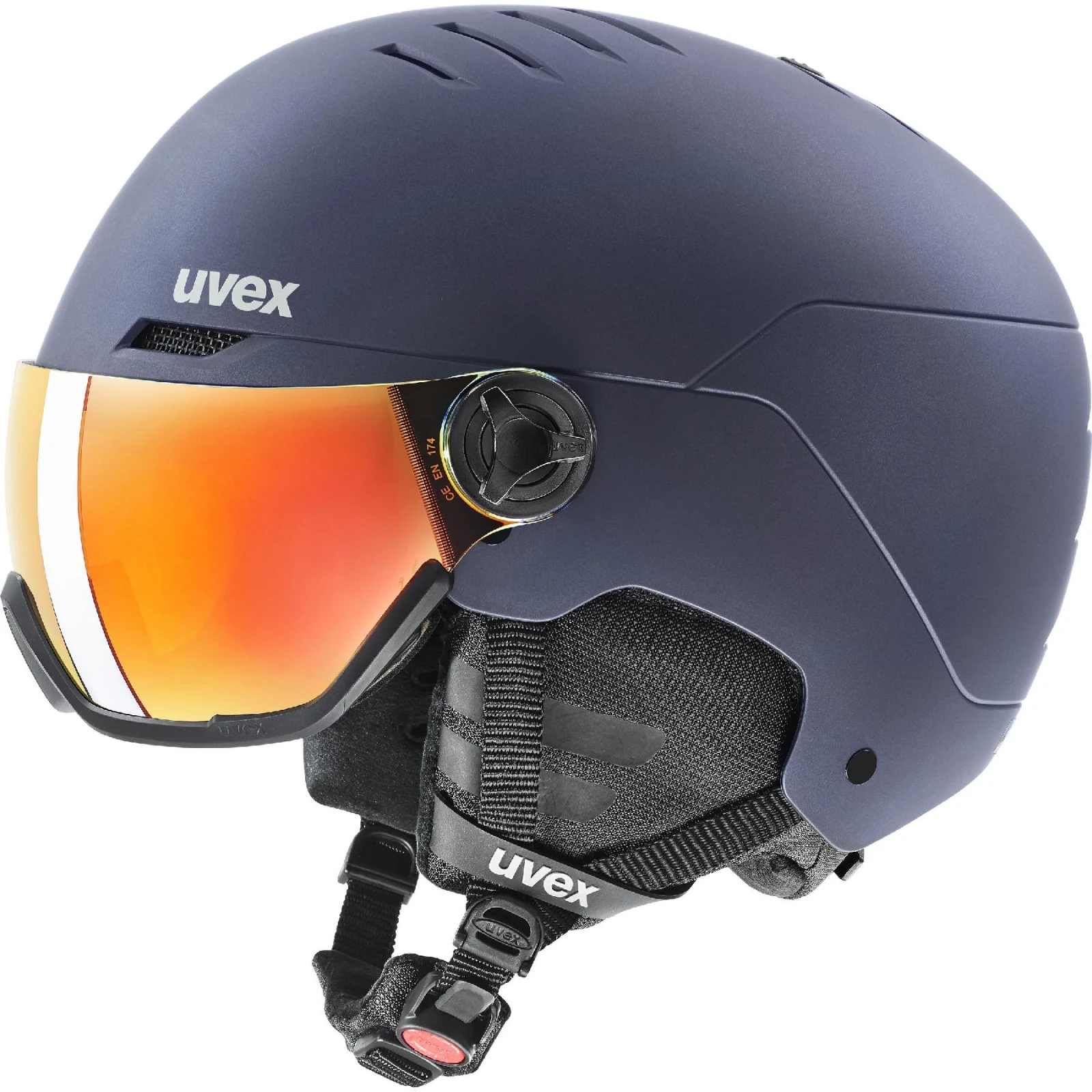 Der Wanted Visor Skihelm von Uvex kombiniert einen klassischen Helm und ein hochwertiges verspiegeltes Visier mit Antibeschlag- Supravision®-Behandlung. Die Linse ist für klares bis teilweise bewölktes Wetter geeignet. Der Helm überzeugt durch geringes Gewicht, hohen Tragekomfort und perfekte Belüftung.