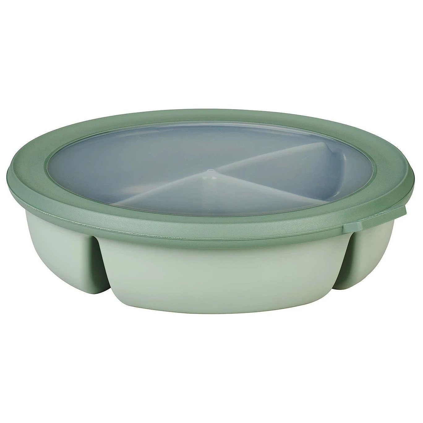 Die runde Bento-Schüssel von Mepal mit drei Unterteilungen ist ideal zum Trennen von Mahlzeiten. Es verfügt über ein Fassungsvermögen von 250 ml + 250 ml + 500 ml. Sie kann sowohl zur Aufbewahrung von Lebensmitteln als auch als Reisebox verwendet werden. Der Deckel verschließt die Dose optimal, sodass Sie Ihr Essen sicher zur Arbeit, auf Reisen oder zum Picknick mitnehmen können. Es hält Lebensmittel frisch und knackig. Dank der wunderschönen nordischen Farben können Sie Speisen in einer Schüssel direkt auf den Tisch servieren.