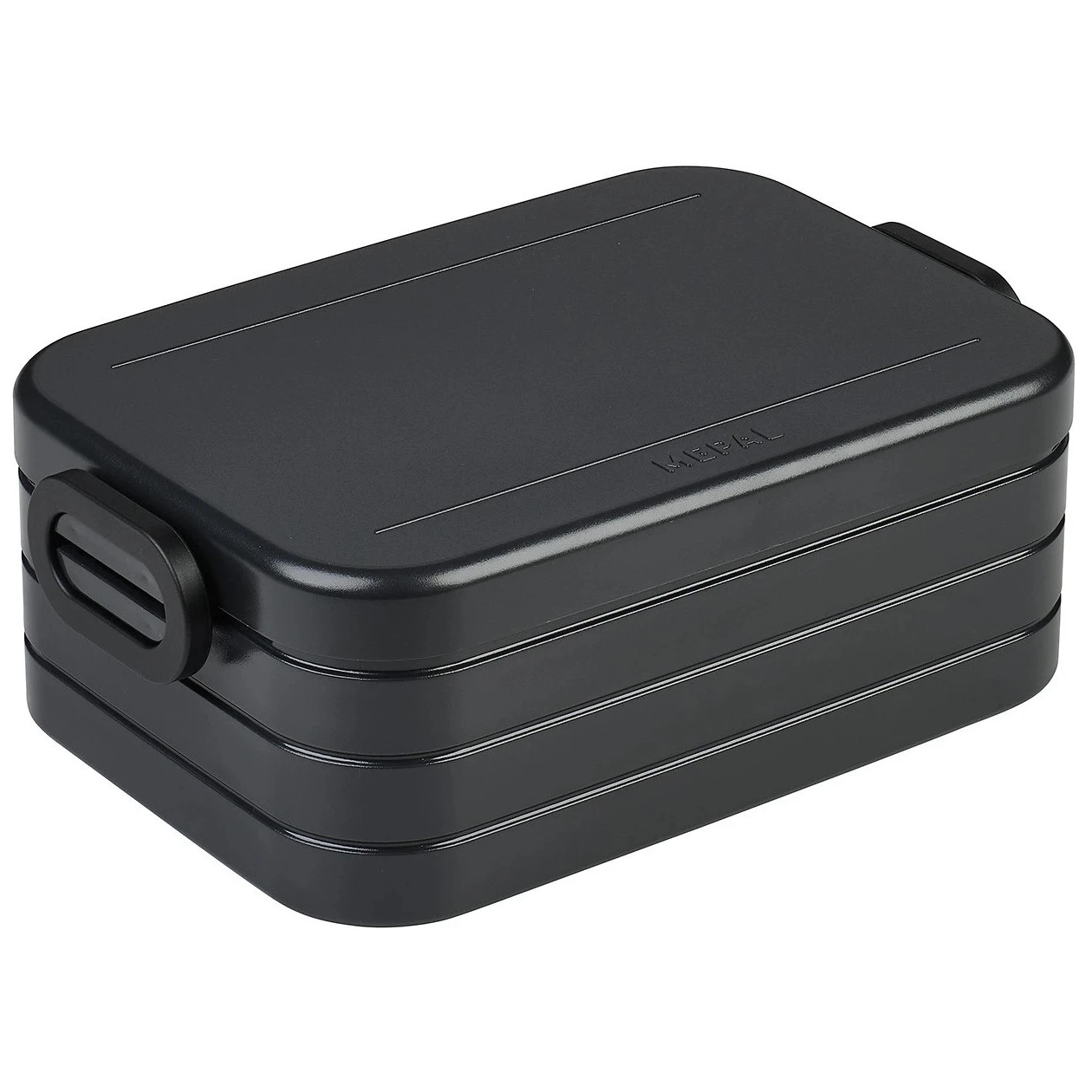 Praktische Snack- und Lunchbox Mepal Bento Midi 900 ml mit Fächern und Gabel für Schule, Arbeit und Reisen. Es hält Lebensmittel frisch und knackig. Äußerst langlebige Lunchbox mit Fächern, Versiegelung und einfachem Öffnen durch seitliche Clips. Die Lunchbox verfügt über ein herausnehmbares Tablett zum einfachen Servieren. Eine kleine Gabel ist ebenfalls im Lieferumfang enthalten.