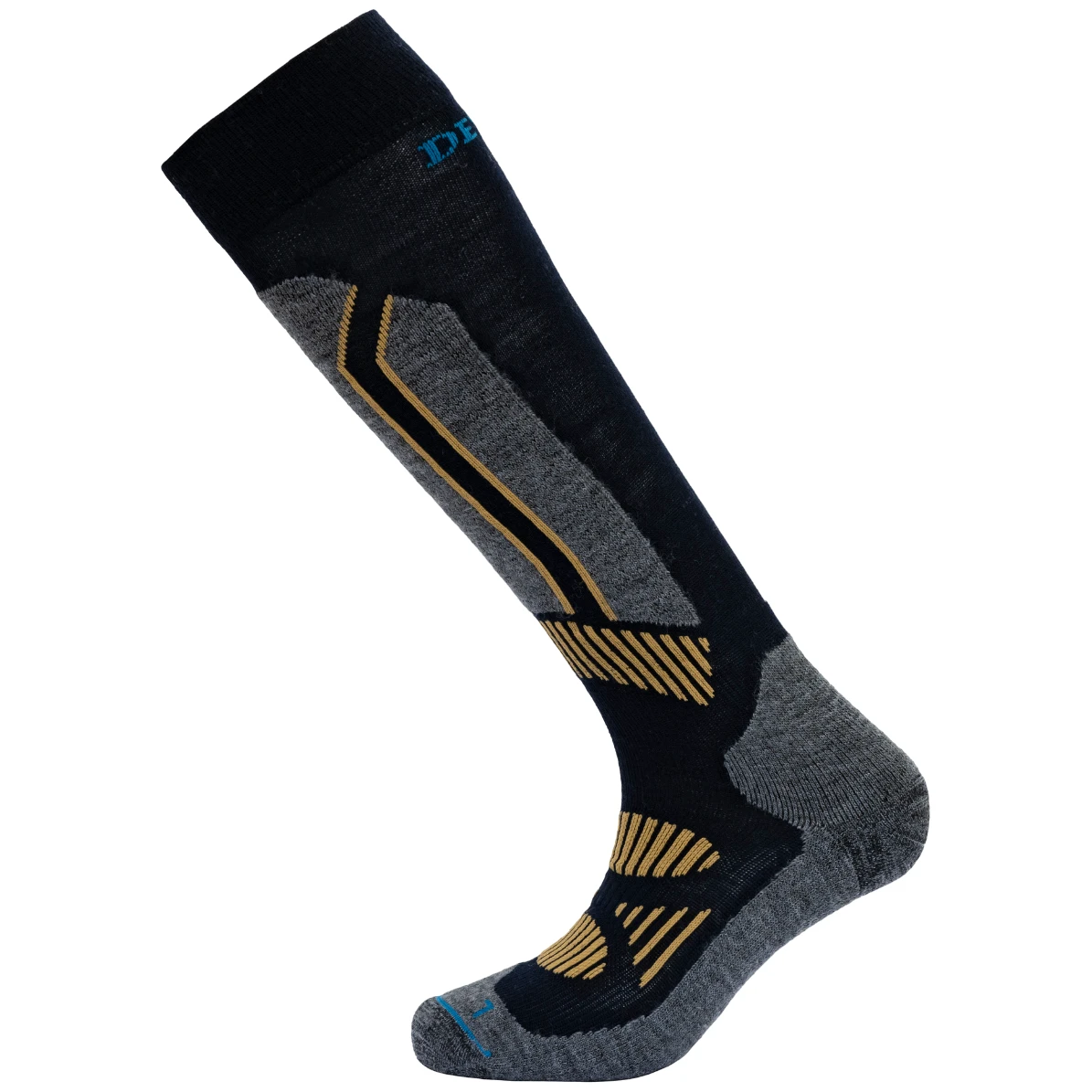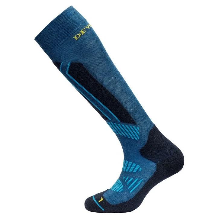 Socken Devold Alpine Sock sind ideal für Skischuhe, das wärmeregulierende Material hält Ihre Füße warm und trocken. Die Kniestrümpfe sind elastisch, wodurch ein Verrutschen der Strümpfe verhindert und die Blasengefahr minimiert wird. Die Socken sind ergonomisch geformt für den linken und rechten Fuß.