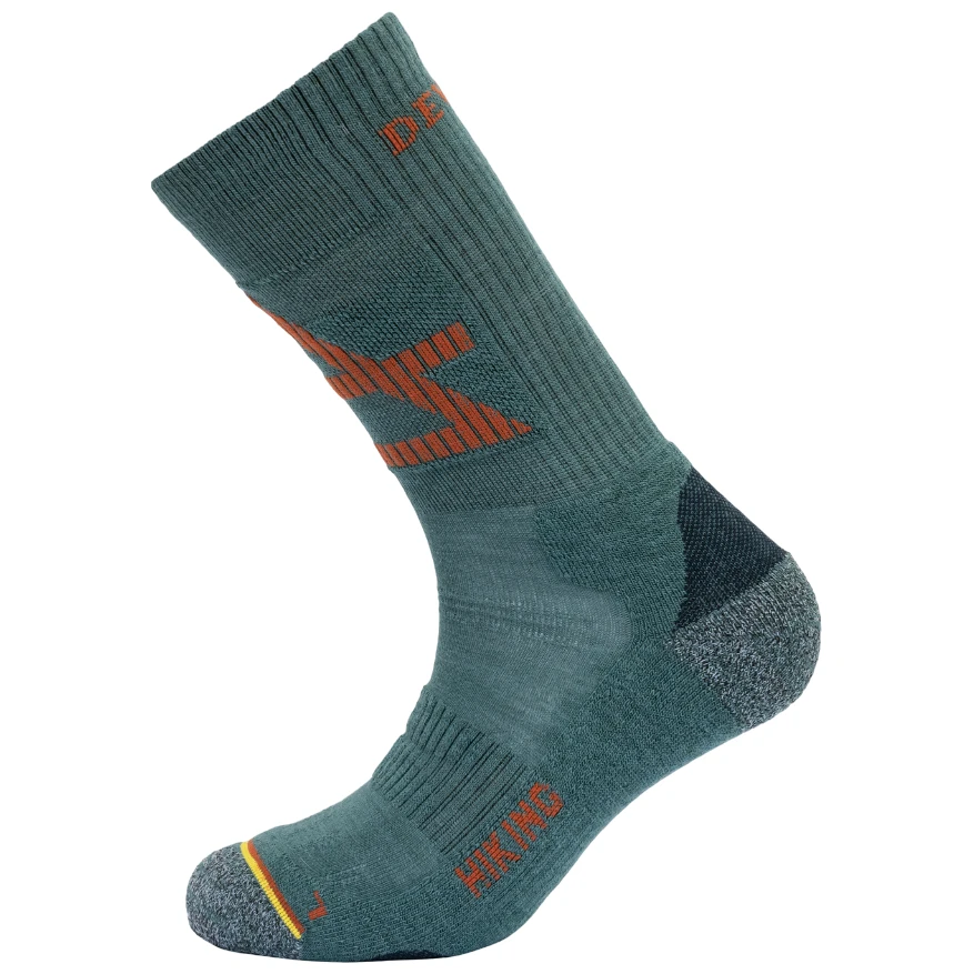 Devold Hiking Medium Sock sind mittelhohe Sockenmit verstärkter Ferse und Zehenpartie für höhere Widerstandsfähigkeit gegen mechanische Beschädigungen und längere Haltbarkeit. Die enge Strickart und die Y-förmige Ferse erhöhen die Stabilität der Socke. Sie passen perfekt und sitzen am Bein. Dadurch wird ein Verrutschen und ein unangenehmes Verrutschen im Schuh verhindert. Der elastische und flache Saumabschluss unterstreicht die Perfektion der Socken und garantiert höchsten Tragekomfort ohne unangenehmen Hautdruck. Fuß und Wade sind mit verstärktem Material ausgestattet, das für mehr Wärmekomfort und ein weiches Tragegefühl sorgt. Am Spann befindet sich ein Mesh-Material, welches dem Fuß ermöglicht, besser zu atmen und schneller zu trocknen. Für hervorragende temperaturregulierende Eigenschaften sorgt zudem die Merinowolle, die die Basis des Materials bildet. Die Socken sind ergonomisch geformt für den linken und rechten Fuß.