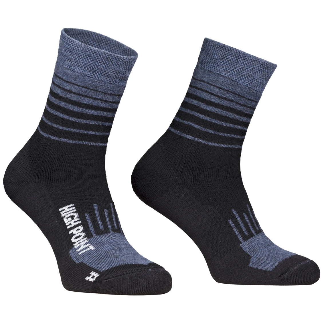 Hohe Wollsocken Mountain Merino 3.0 Socken der Marke High Point eignen sich für Trekking, Bergsteigen und andere Aktivitäten bei winterlichen Bedingungen. Die Konstruktion und Materialzusammensetzung garantieren den Feuchtigkeitstransport von der Haut und den Schutz der Füße.