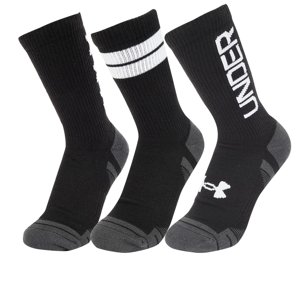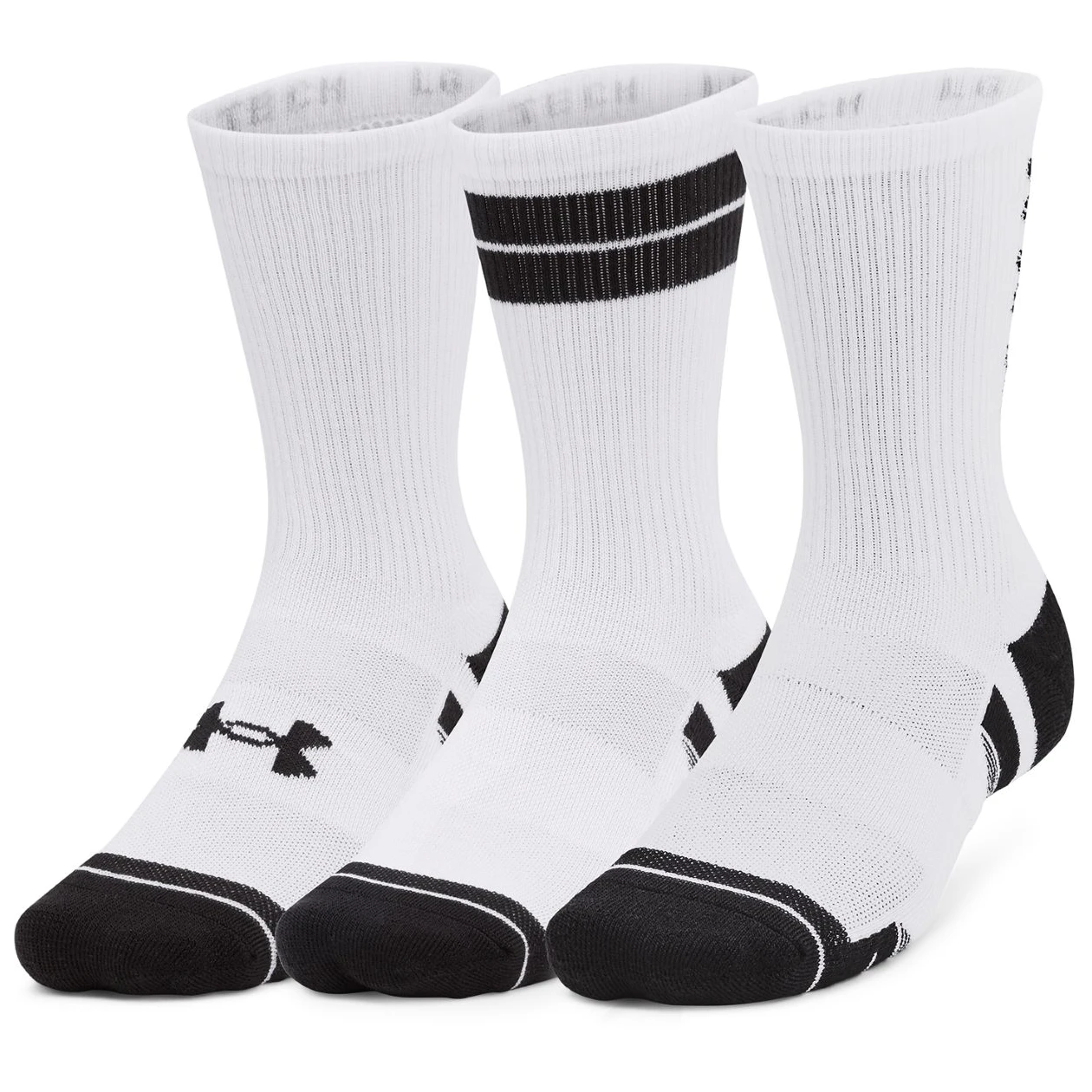 Das Perf Tech Nov 3pk Crew Sockenset der Marke Under Armour enthält drei Paar Socken aus angenehmem Material, das Schweiß gut ableitet und schnell trocknet. Die neue Locked-In Fit -Konstruktion hält die Socke sicher an ihrem Platz.