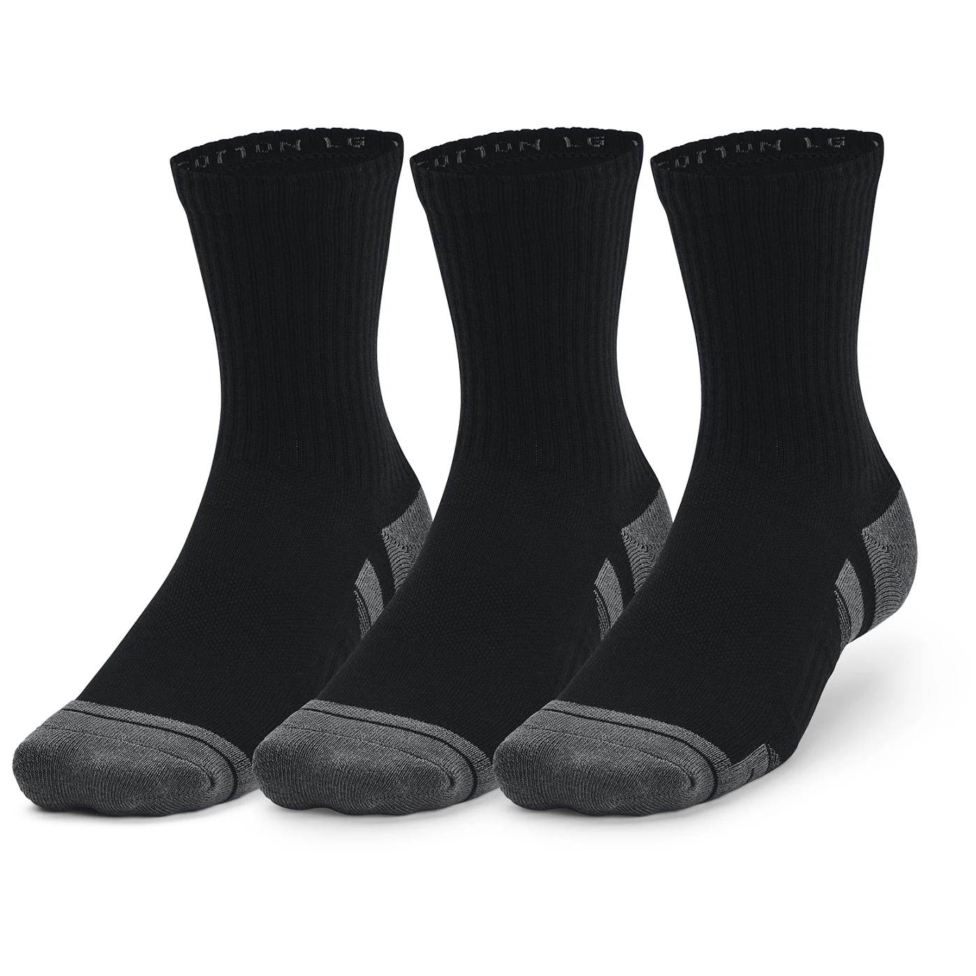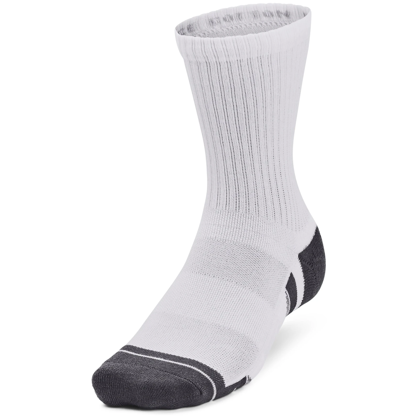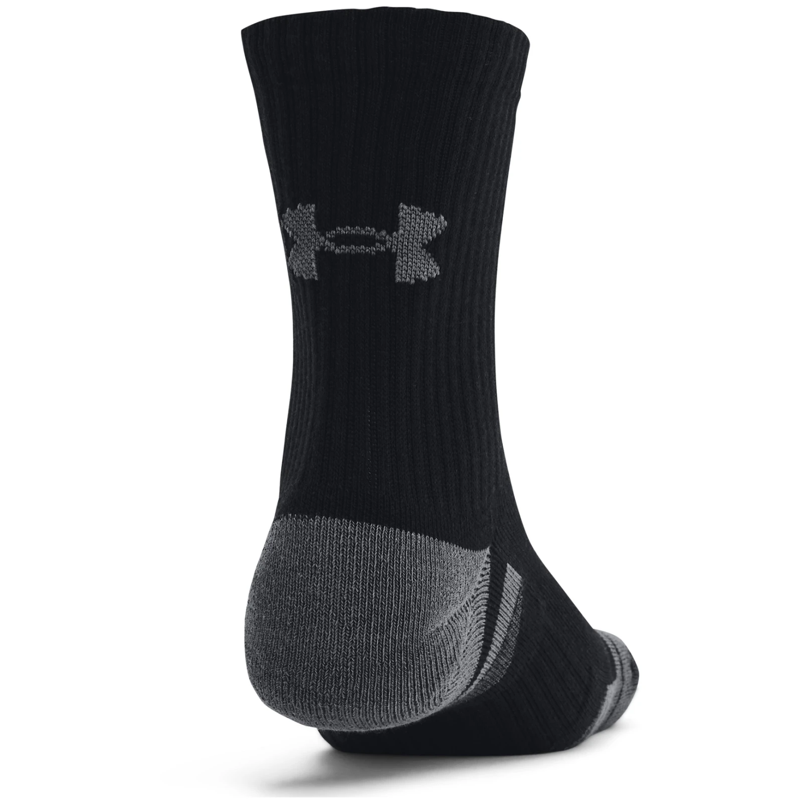 Das Performance Cotton Mid Socken-Set von Under Armour beinhaltet drei Paar Socken aus angenehmem Material, das Schweiß gut ableitet und schnell trocknet. Die neue Locked-In Fit -Konstruktion hält die Socke sicher an der Ferse.