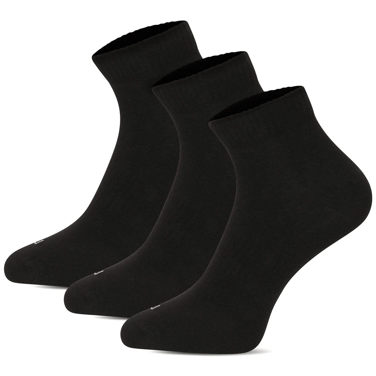 Schwarze Basic-Socken für Sport, Beruf und Freizeit. Der bequeme obere Saum und die Rippverstärkung am Spann sorgen für hohen Komfort auch bei ganztägigem Tragen.
