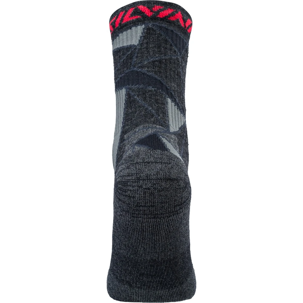 Funktionelle Sportsocken Vallonga UA1745 vom tschechischen Hersteller Silviini zum Langlaufen, Laufen oder Radfahren bei kaltem Wetter. Das Funktionsmaterial trocknet schnell und leitet den Schweiß hervorragend ab. Die Socken haben verstärkte Zehen- und Fersenpartien, Fußbelüftung und einen elastischen oberen Saum. Kombination aus Kunstfaser und Merino (14%).