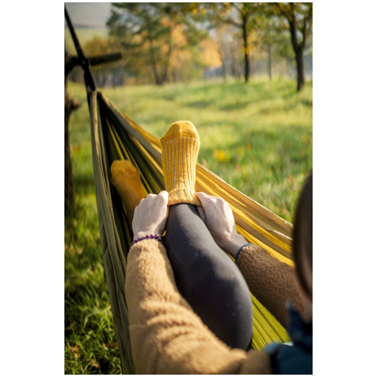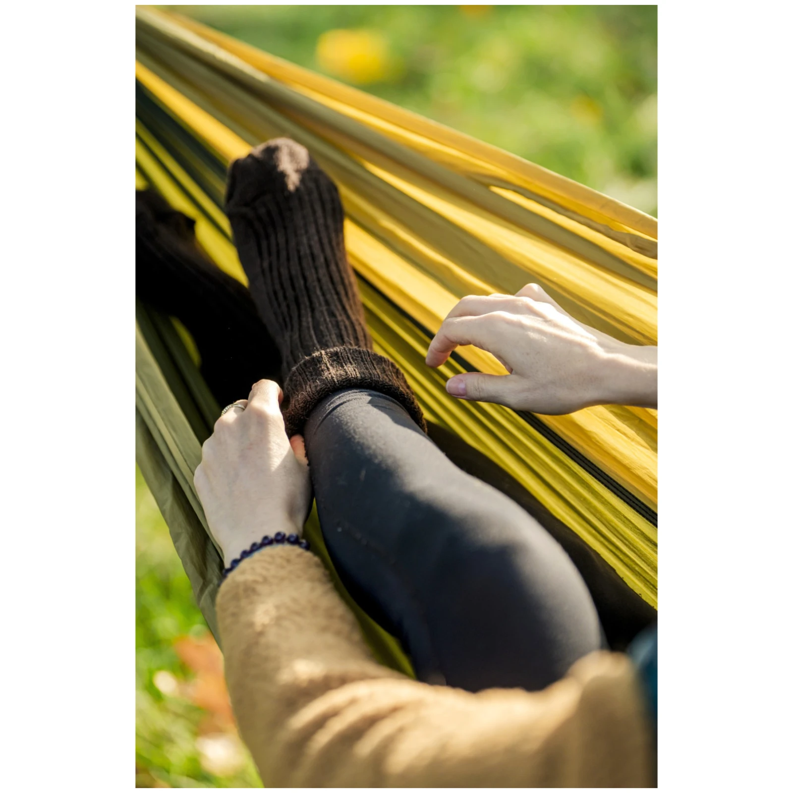 Die bequemen Talvi Frotteesocken der Marke Warg bestehen aus einer Mischung aus Merinowolle und Alpakawolle, deren Kombination beim Tragen für ein besonders weiches und seidiges Tragegefühl sorgt. Den Socken sind Wollfasern und Silberionen zugesetzt, die eine antibakterielle Wirkung haben und unangenehme Gerüche beseitigen , selbst wenn sie den ganzen Tag getragen werden. Der sanfte Saumabschluss engt das Bein nirgends ein und die hohe Atmungsaktivität des Materials sorgt für einen angenehmen Tragekomfort.