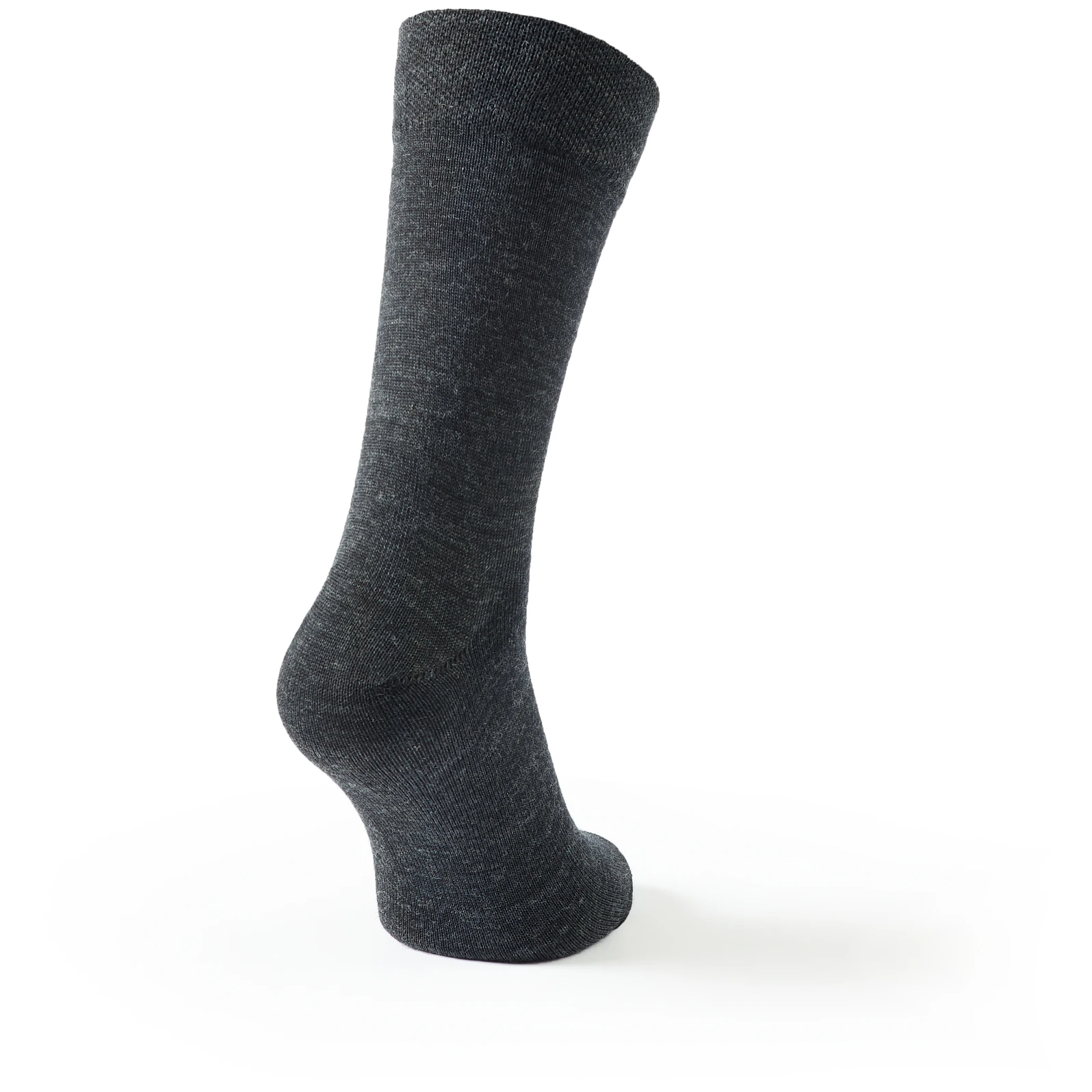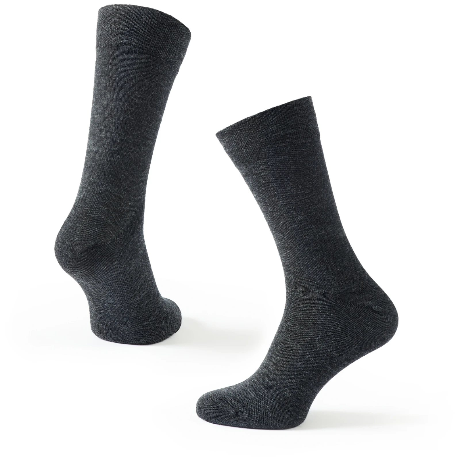 Diplomat-Socken Zulu sind warm und funktional dank der Verwendung von Merinowolle. Das universelle, dezente Design macht sie zum idealen Begleiter fürs Büro und für Ausflüge in die Natur. Sie bestehen aus einem außergewöhnlich weichen Material mit Merinowoll-Beimischung, das auch bei längerem Tragen geruchshemmend ist und selbst im nassen Zustand noch wärmt. Darüber hinaus verfügen sie über eine erhöhte Atmungsaktivität im Ristbereich und sind von Natur aus antibakteriell.