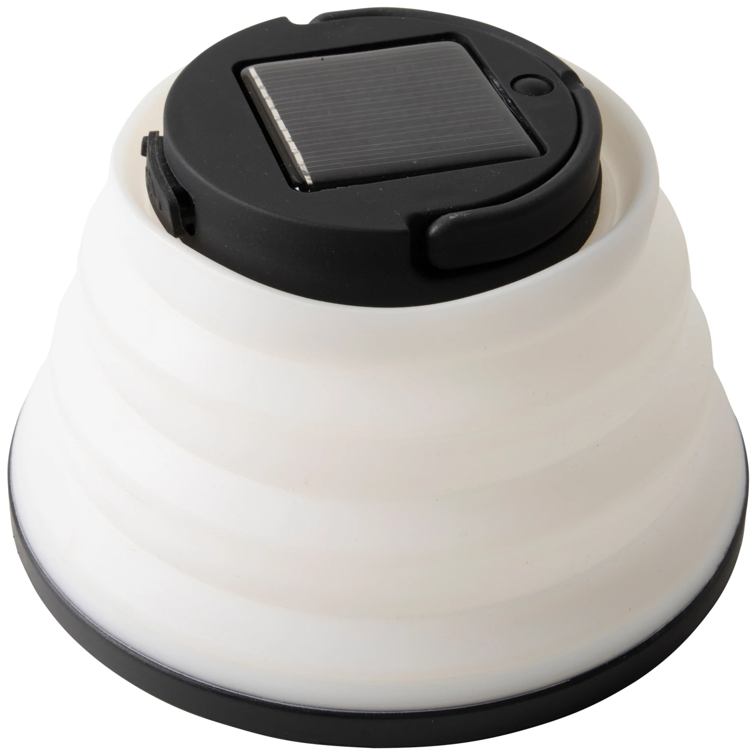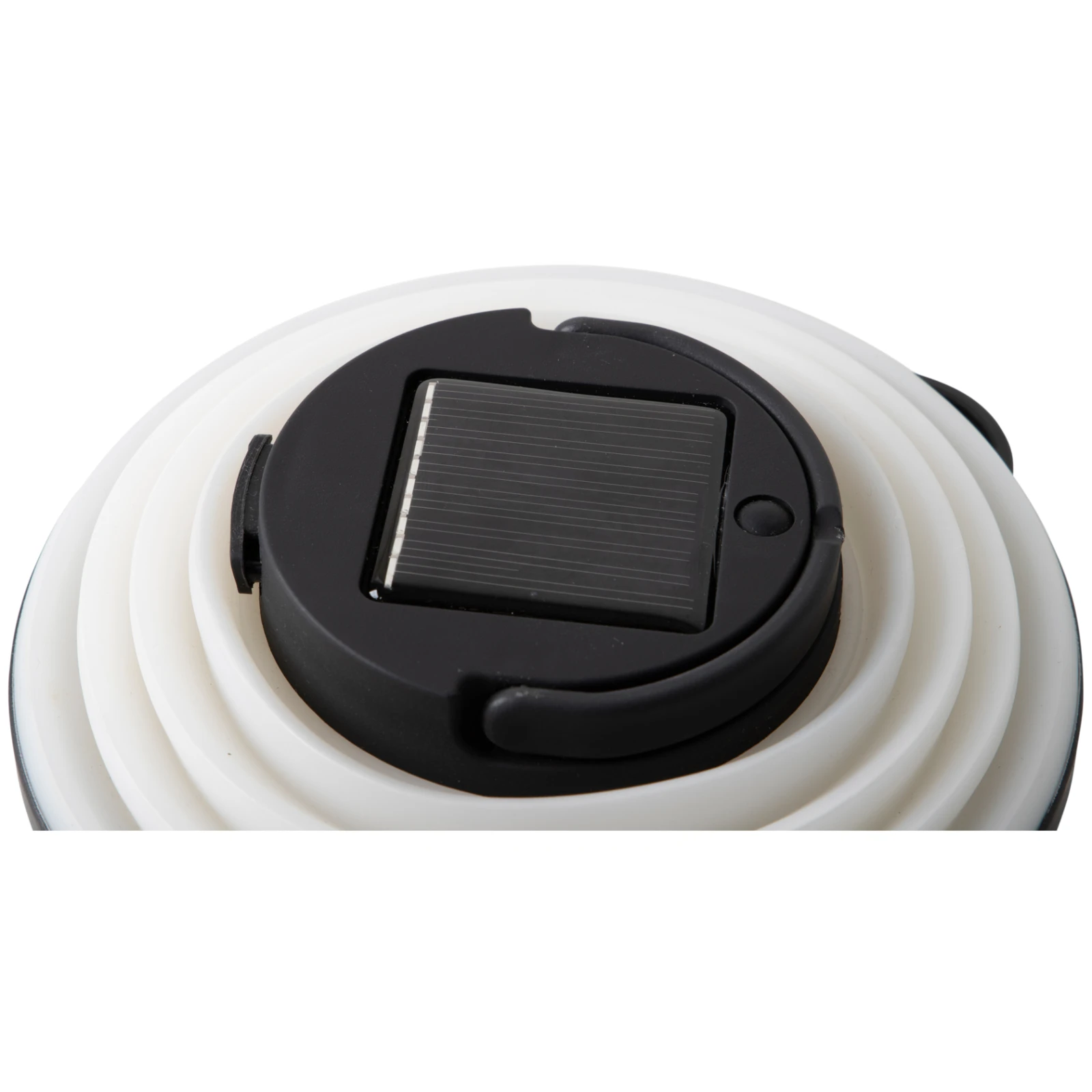 Sehr kompakte hängende Solarlampe Bo-Camp Seginius Solar mit einer Lichtstärke von 150 lm. Diese Lampe ist äußerst kompakt, da das Silikongehäuse komplett faltbar ist. Es sorgt für angenehmes Licht dank warmweißer LED-Beleuchtung mit 4 Lichtmodi. Der eingebaute Lithium-Ionen-Akku kann mit Solarenergie oder dem mitgelieferten USB-Kabel aufgeladen werden. Inklusive Karabiner zum Aufhängen der Lampe beispielsweise an einem Sonnenschirm oder Zelt.