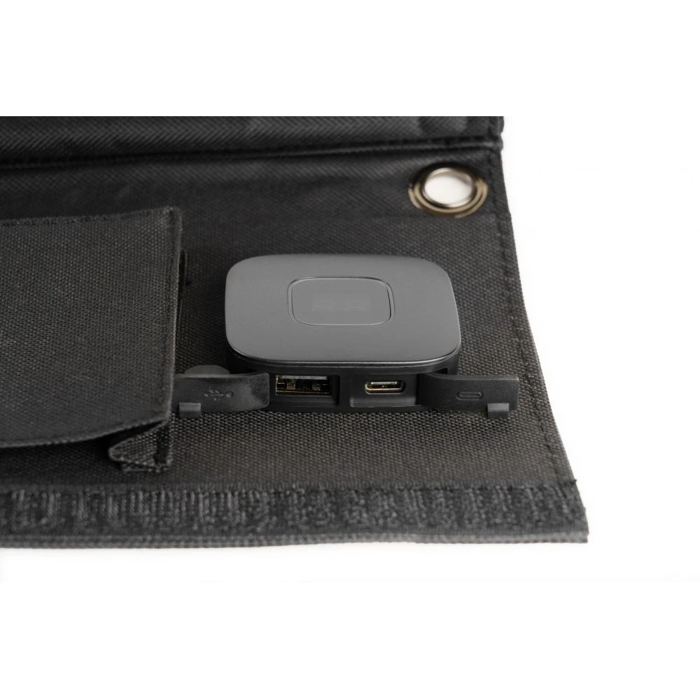 Das Panel verfügt außerdem über ein Display, auf dem Sie die aktuelle Leistung des Panels ablesen können, eine Tasche zum Aufbewahren des geladenen Geräts und eine erhöhte Haltbarkeit, beispielsweise durch die IPX 4 -Zertifizierung, die Resistenz gegen Spritzwasser gewährleistet.