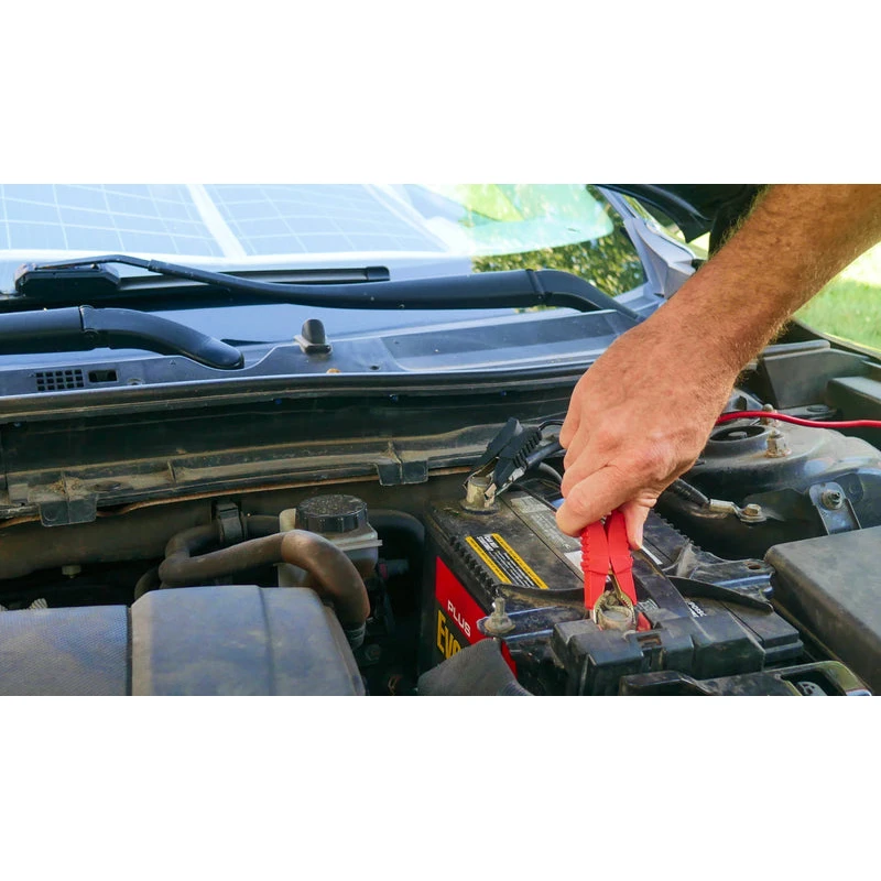 Mit diesem faltbaren Solar Shield Solarpanel der Marke GoSun können Sie Ihr Auto kühl halten und gleichzeitig bis zu 60 Watt Strom erzeugen. Shield ist mit jeder Windschutzscheibe kompatibel und der integrierte Neigungsständer ermöglicht es, es bei Verwendung im Freien überall auf die Sonne auszurichten. Versorgen Sie Geräte direkt über USB mit Strom, laden Sie jede Powerbank GoSun auf oder laden Sie Ihre Fahrzeugbatterie. Langlebiges ETFE-Solarpanel, faltbar für Reisen, Camping, den Strand oder andere Abenteuer. Schützen Sie Ihr Auto vor Überhitzung, wenn es im Freien geparkt ist. Verwenden Sie die Markise, um eine leere Fahrzeugbatterie aufzuladen, die Batterie zu warten wenn sie nicht verwendet wird, oder um Ihre Kühlbox oder andere Solargeräte zu beschatten und ihnen gleichzeitig Strom zuzuführen. Für optimale Kühlung und Leistung platzieren Sie den patentierten Schutz an der Außenseite der Windschutzscheibe Ihres Fahrzeugs. Es ist mit elektrischen Anschlüssen ausgestattet: 2 USB-A-Anschlüsse, 1 USB-C-Anschluss, ein Paar Krokodilklemmen und es lädt außerdem jede Powerbank GoSun über seinen 12-V-DC-Anschluss auf.