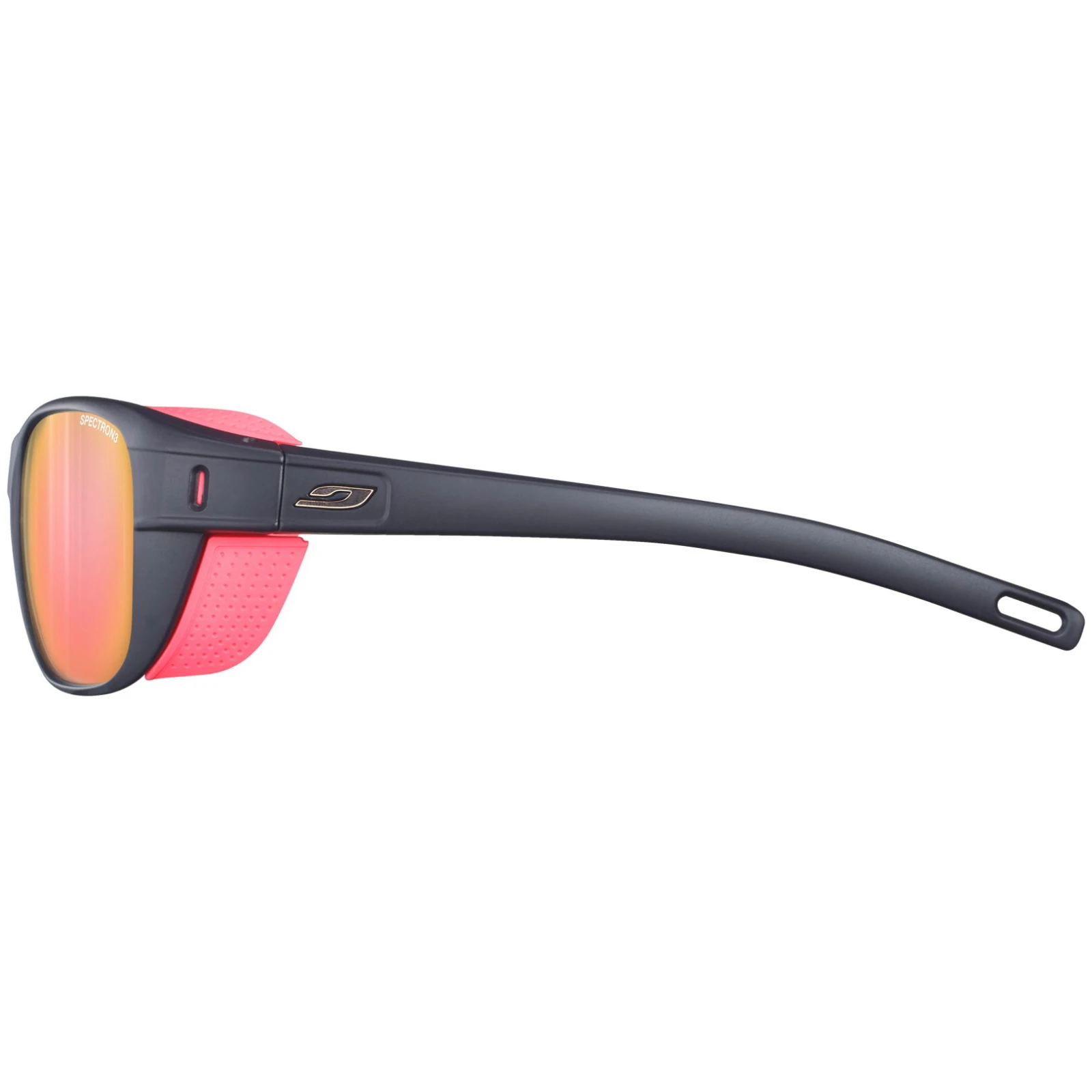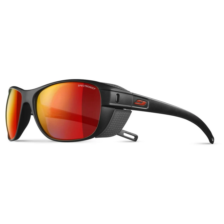 Die Sonnenbrille Camino SP3 CF von Julbo eignet sich zum Wandern, Skifahren oder Wassersport. Dank ihrer ergonomischen Form passen sie sich dem Gesicht optimal an und sind stoßfest. Die Brille Camino SP3 CF ist mit Polycarbonat-Gläsern Spectron 3 ausgestattet, die das Sonnenlicht effektiv filtern und den Augen die nötige Entlastung bieten. Für umfassenden Schutz vor Sonne und Wind verfügt die Brille über abnehmbare Seitenteile. Sehr praktisch ist die Öse für das Trageband, sodass Du keine Angst haben musst, Deine Brille zu verlieren.