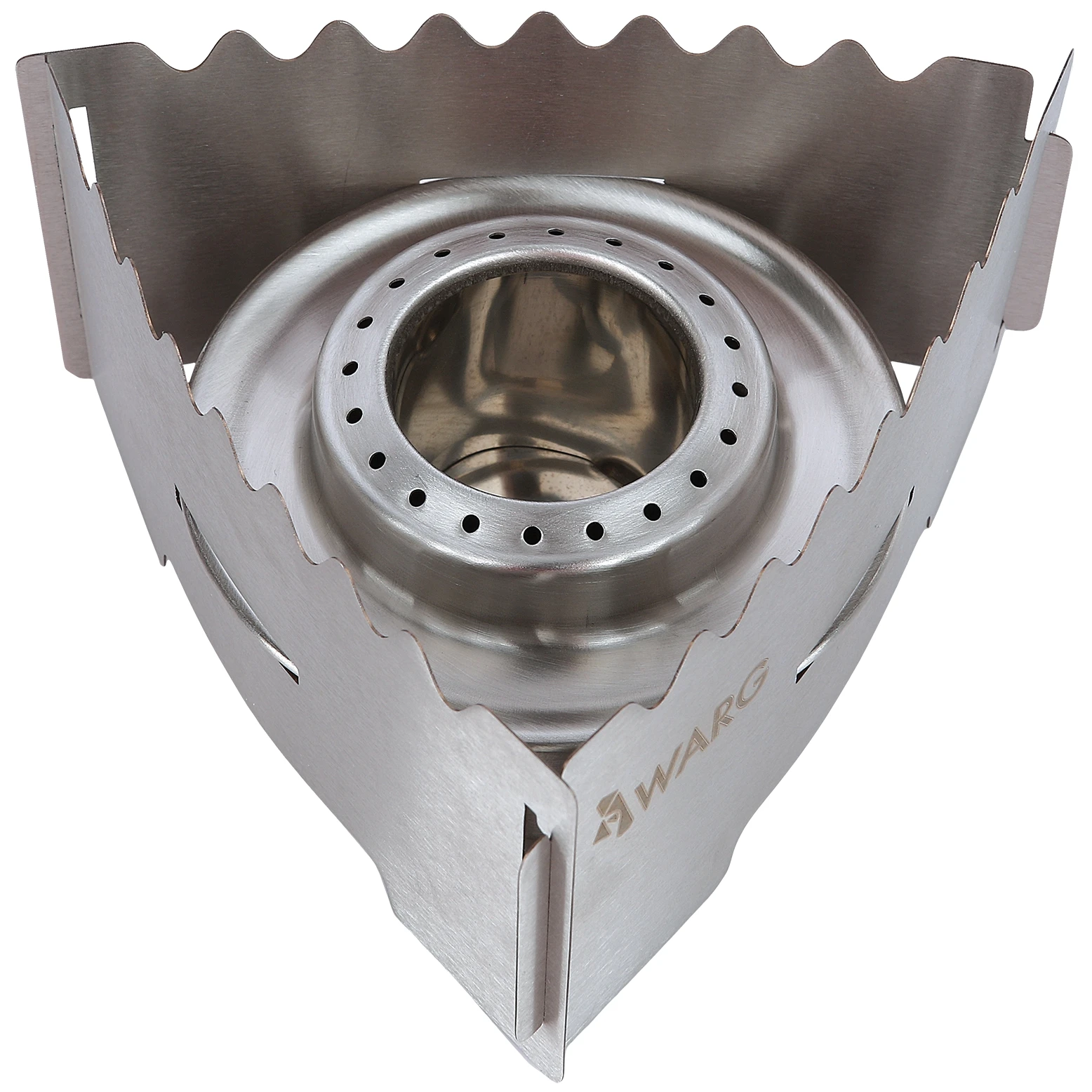 Der kompakte Spirituskocher eignet sich optimal für den Einsatz beim Wandern, funktioniert aber auch als Ersatzkocher auf dem Campingplatz. Im Lieferumfang ist ein robuster Ständer aus rostfreiem Stahl enthalten, der die Flamme zudem vor Wind schützt . Die Bauform ist auch zum Kochen in größeren Töpfen geeignet.