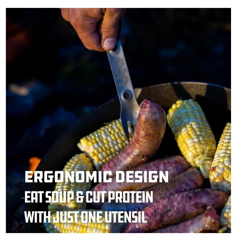 - Das 3-in-1-Design bietet eine spezielle Gabel und einen Löffel sowie eine gezackte Kante an der Gabel zum Schneiden