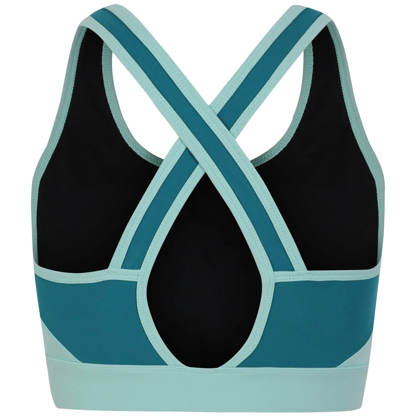 Swift II ist ein Damen-Sport-BH der Firma Dare 2b, der aus recyceltem Q-Wic Plus-Stoff hergestellt wird. Es beschleunigt das Trocknen, transportiert Feuchtigkeit an die Oberfläche und wehrt geruchsbildende Bakterien ab. Das überkreuzte Trägerdesign des BHs und die herausnehmbaren Körbchen sorgen für einen sicheren und bequemen Sitz. Es ist für Sportarten mit mittlerer Belastung konzipiert und eignet sich daher perfekt für Yoga oder Krafttraining.