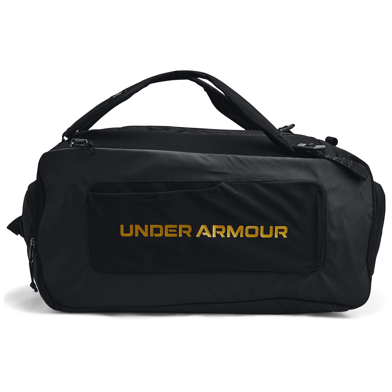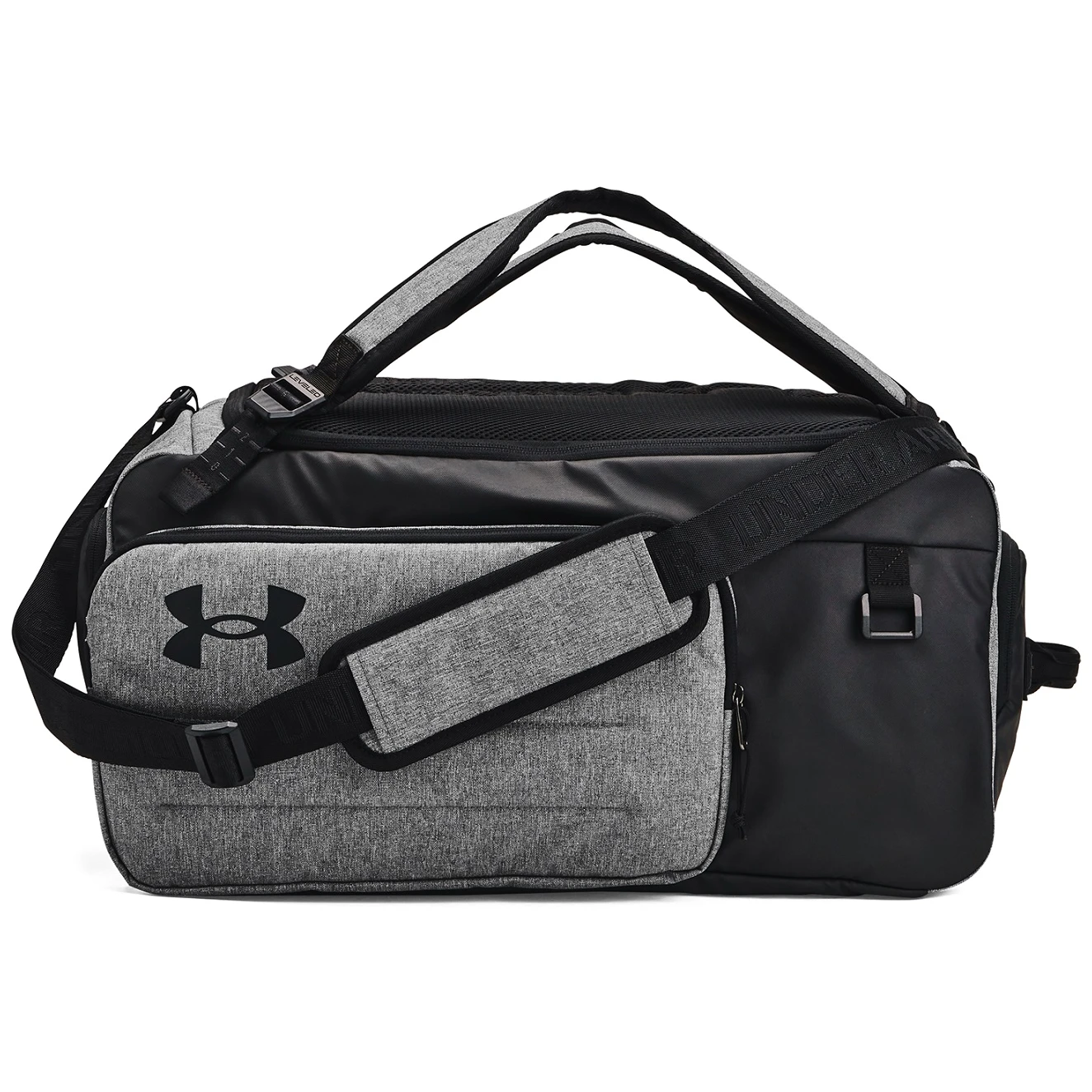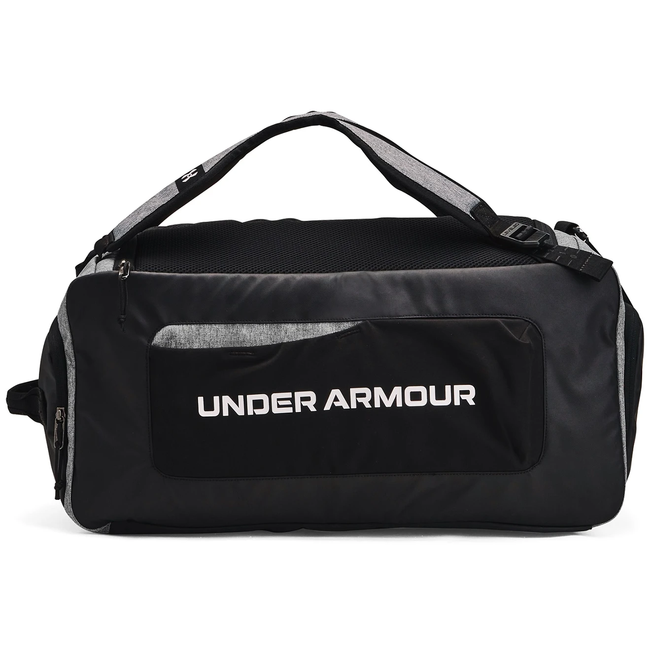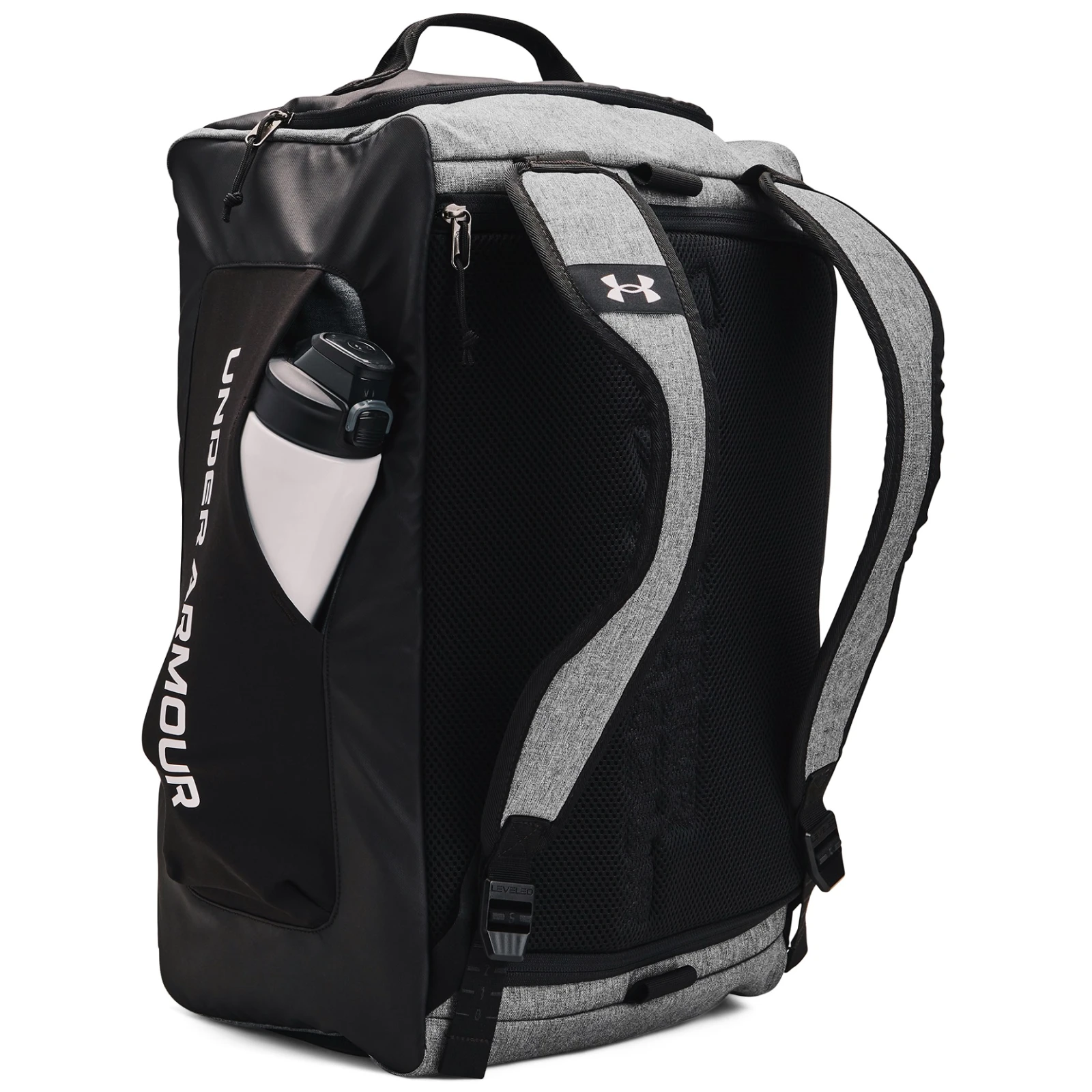 Die geräumige sportliche Umhängetasche Under Armour Modell Contain Duo MD BP Duffle aus Material Storm bietet Ihren Sachen Schutz vor Wasser. Der Boden und die Seiten bestehen aus extra strapazierfähigem Material gegen Abrieb. Die Tasche ist aufgeteilt in große atmungsaktive Tasche für Kleidung oder Schuhe und zusätzliche Innentaschen für eine einfachere Organisation. Bequeme Tragegriffe und ein langer verstellbarer Schultergurt erleichtern die Handhabung und den Transport. Zudem lässt sich die Tasche in einen Rucksack verwandeln, der sich bequem an zwei Schultergurten tragen lässt.