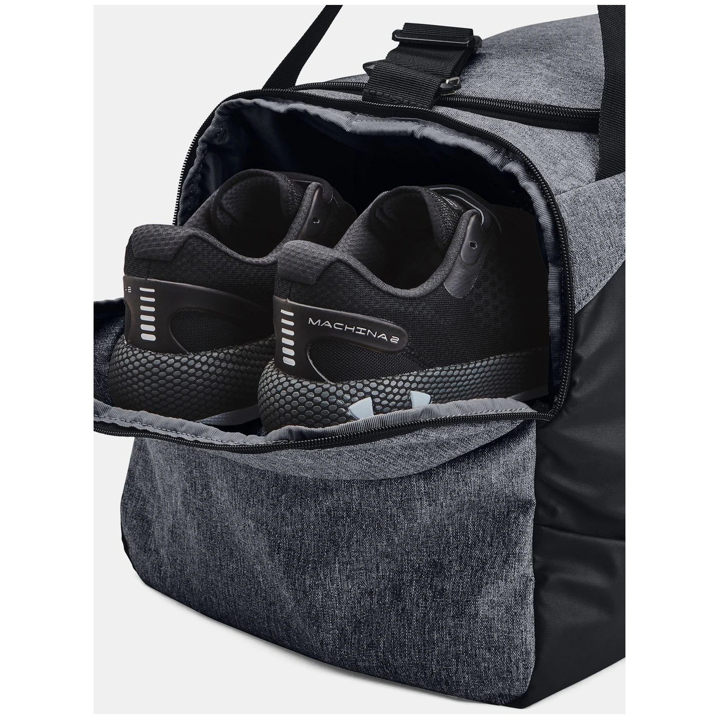 Die geräumige sportliche Umhängetasche Under Armour Modell Undeniable 5.0 Duffle MD aus Material Storm bietet Ihrem Hab und Gut Schutz vor Wasser. Der Boden und die Seiten bestehen aus extra strapazierfähigem Material gegen Abrieb. Die Tasche ist aufgeteilt in große atmungsaktive Tasche für Kleidung oder Schuhe und zusätzliche Innentaschen für eine einfachere Organisation. Bequeme Tragegriffe und ein langer verstellbarer Schultergurt erleichtern die Handhabung und den Transport. Schlaufe zum Befestigen anderer Gegenstände für den Transport.