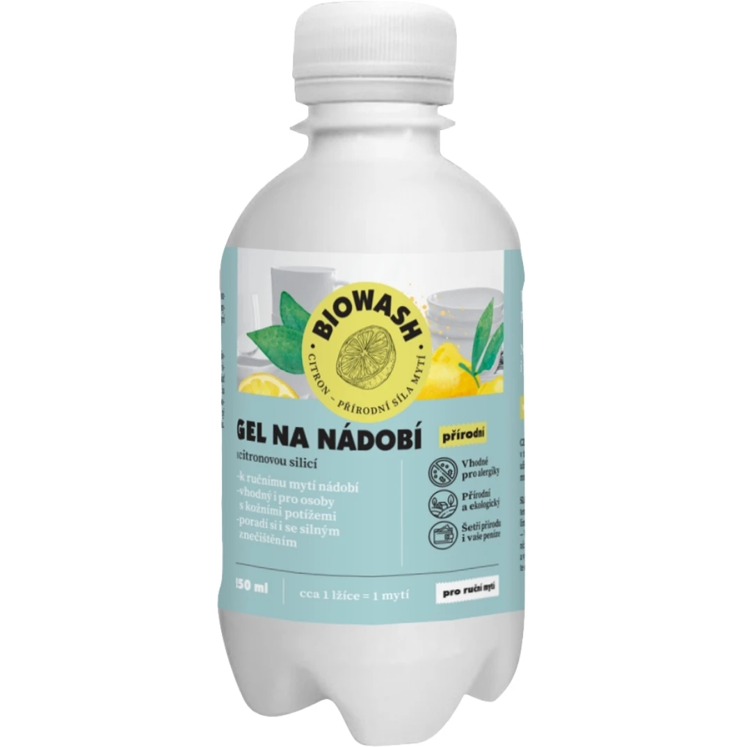 Ökologisches Geschirrspülgel der Marke Biowash wird auf natürlicher Basis hergestellt, hat einen Zitronenduft und ist zum Handspülen von Geschirr bestimmt. Es verursacht keine Hautreizungen und ist auch zum Geschirrspülen ohne Handschuhe geeignet.