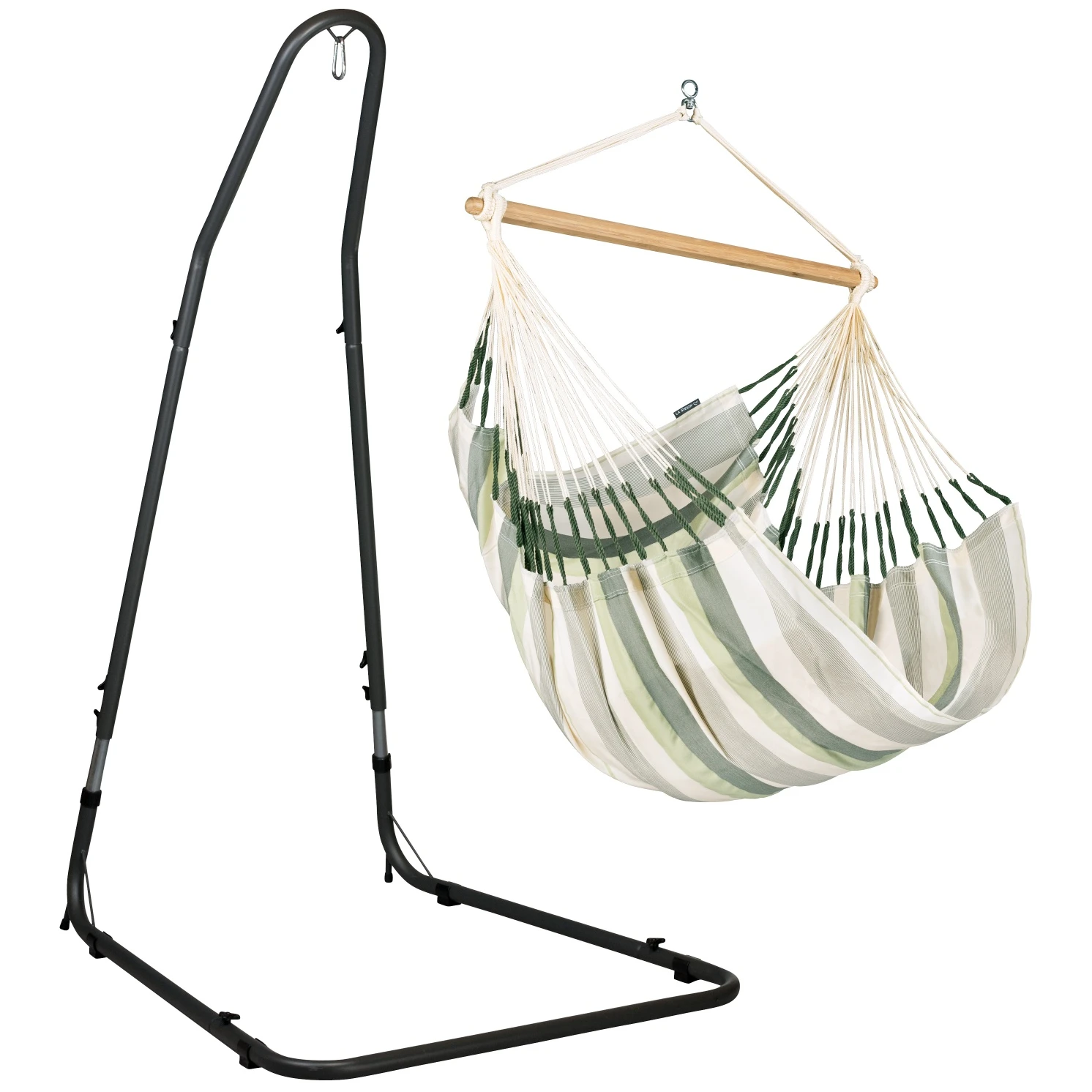 Für die Herstellung verwendet La Siesta ausschließlich ökologische Rohstoffe und Holz aus verantwortungsvoller Forstwirtschaft. Am Angebot des Unternehmens findet man auch Reisehängematten oder Kinderhängematten.