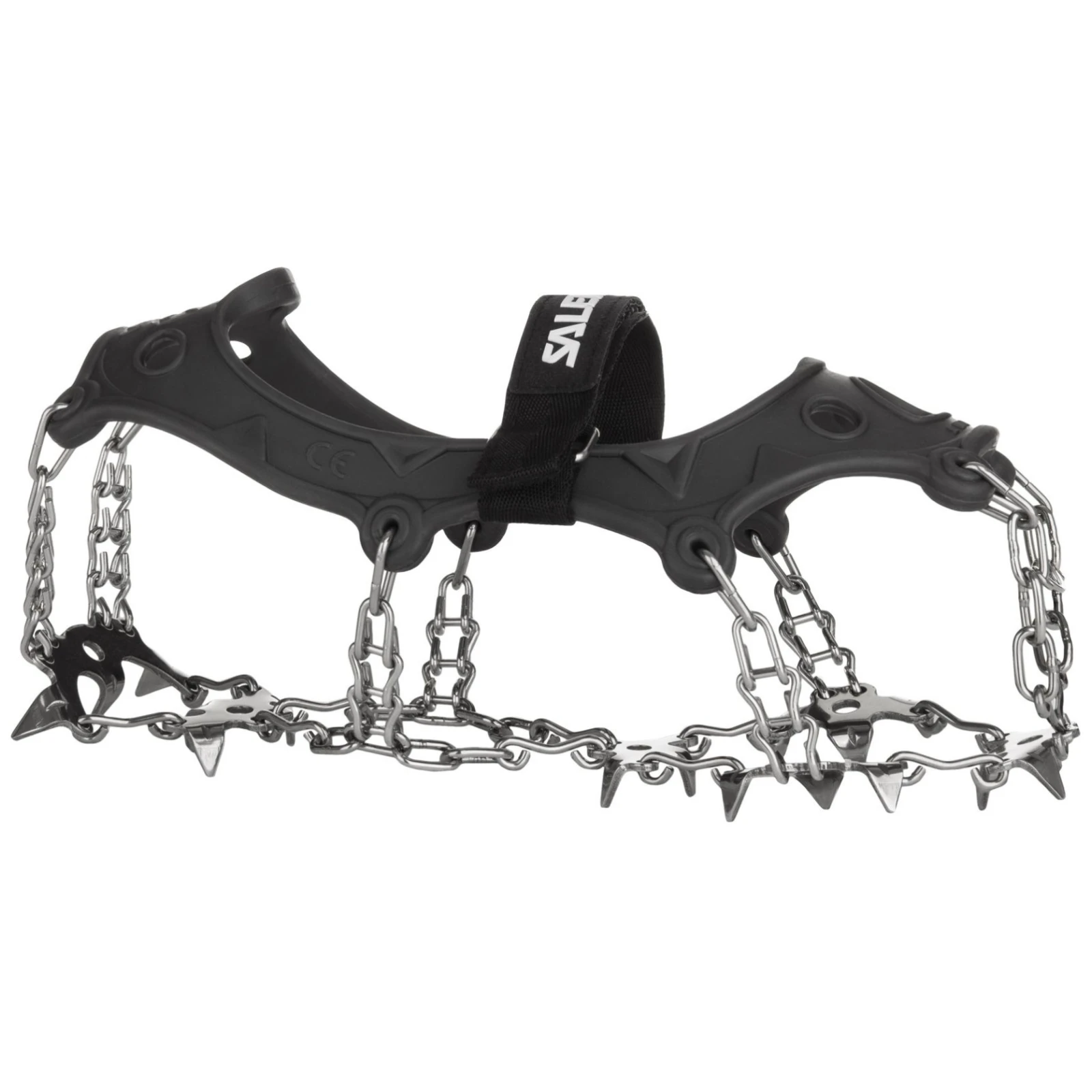 Die robuste Konstruktion mit achtzehn gehärteten Edelstahlspikes und soliden Ketten sorgt für gute Traktion und hält wiederholten Drehmomenten stand. MTN-Spikes ermöglichen die Bewegung auf abfallenden Eis- und Schneeflächen.