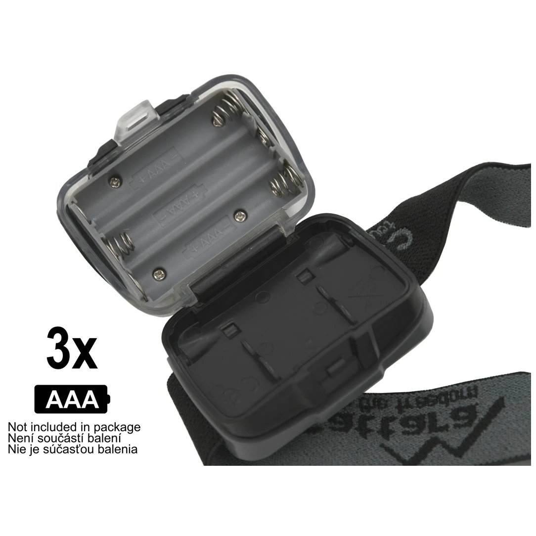 Sehr kleine Stirnlampe Cattara HORNET 130lm COB mit einer Leistung von 130lm und einer Laufzeit von bis zu 4 Stunden. Die Stirnlampe bietet 2 Beleuchtungsmodi : normal und gedimmt. Die Stromversorgung erfolgt über drei AAA-Batterien, die nicht im Lieferumfang enthalten sind.